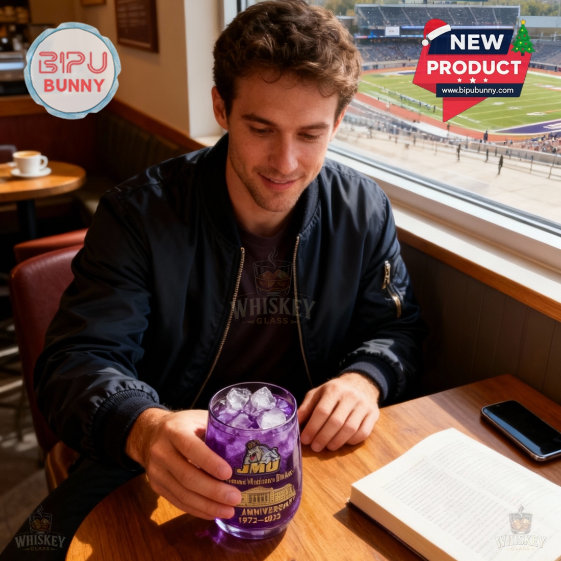 This whiskey glass is ideal for James Madison Dukes alumni, current students, sports fans, and collectors of university memorabilia. Using it creates a relaxed sense of pride, especially during game days watch parties or quiet moments at home. The purple tone looks striking under light, and the detailed artwork adds character without distracting from the drink itself.