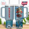 Indulge your inner hockey aficionado and celebrate the cinematic masterpiece that is – Jaws- with this exquisitely crafted 40oz Stanley Cup. A testament to the enduring power of iconic imagery, this collector’s item seamlessly blends the thrill of the NHL’s ultimate prize with the chilling suspense of Spielberg’s maritime thriller. The imposing size of the cup itself evokes the sheer magnitude of the great white’s presence, while its meticulous design – a masterful fusion of classic Stanley Cup aesthetics and subtly incorporated – Jaws- -inspired motifs – renders it a truly unique conversation piece. Imagine the envious glances and spirited debates sparked by this striking artifact as it graces your bar, man cave, or trophy shelf. More than just a vessel for your favorite beverage, this 40oz behemoth stands as a potent symbol of triumphant victory against insurmountable odds, whether on the ice or in the churning depths of the ocean. Its presence is a bold declaration of your refined tastes and appreciation for both athletic prowess and cinematic artistry. A truly exceptional acquisition for discerning collectors, this Jaws Amity Island Stanley Cup guarantees a palpable sense of awe and a lasting memento of two unforgettable cultural phenomena. Prepare to be captivated by its unparalleled grandeur and the riveting narrative it so subtly conveys. This is not merely a cup; it’s a statement.