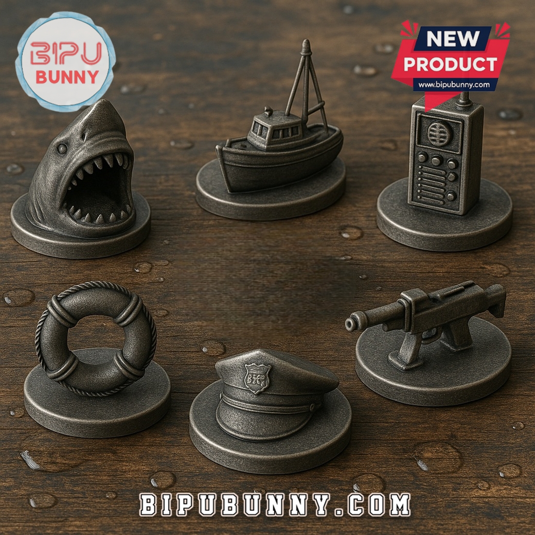 The Jaws Monopoly Board Game brings a thrilling twist to the classic board game by blending Monopoly’s timeless gameplay with the suspense of the iconic 1975 movie Jaws. The box design is immediately eye catching, featuring deep ocean blue tones with a dramatic shark rising from the depths toward a lone swimmer. Inside, the board is rich with detail, from movie inspired locations such as Amity Beach and Quint’s Shack to the shark looming at the center. The color palette is bold yet moody, staying true to the film’s atmosphere, while the print quality ensures sharp images and durable finishes. The set includes metallic player tokens shaped like a shark head, lifebuoy, police cap, radio, weapon, and boat, each crafted with precision to feel weighty in your hand. Even the smallest touches, like Shark Encounter cards and customized property names, add depth to the experience. Whether placed on a shelf as a collector’s piece or opened for game night, this edition celebrates the film’s 50th anniversary with both style and nostalgia.