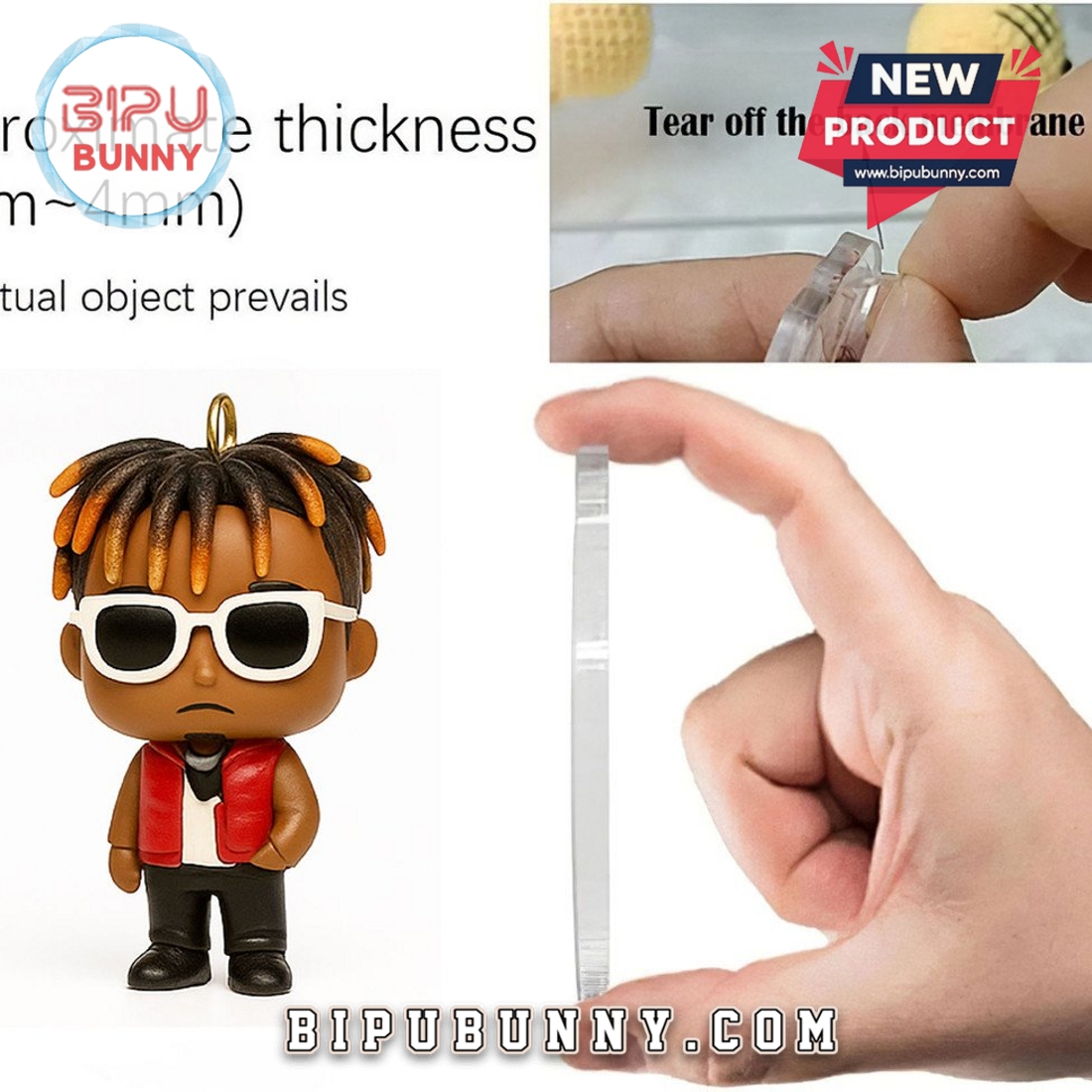 Each figure is uniquely styled—from classic looks in red jackets and hoodies, to fun holiday versions like Santa Juice, Reindeer Juice, and Elf Juice. The front of every mini has a loop for hanging, perfect for turning them into ornaments, while the backs are cleanly cut for safe handling. The print on each is high-resolution and laminated, giving off a premium shine and preventing scratches. You can easily peel off the protective film before use. The box itself is reusable for storage or display, and makes a standout piece on any shelf or under the tree.