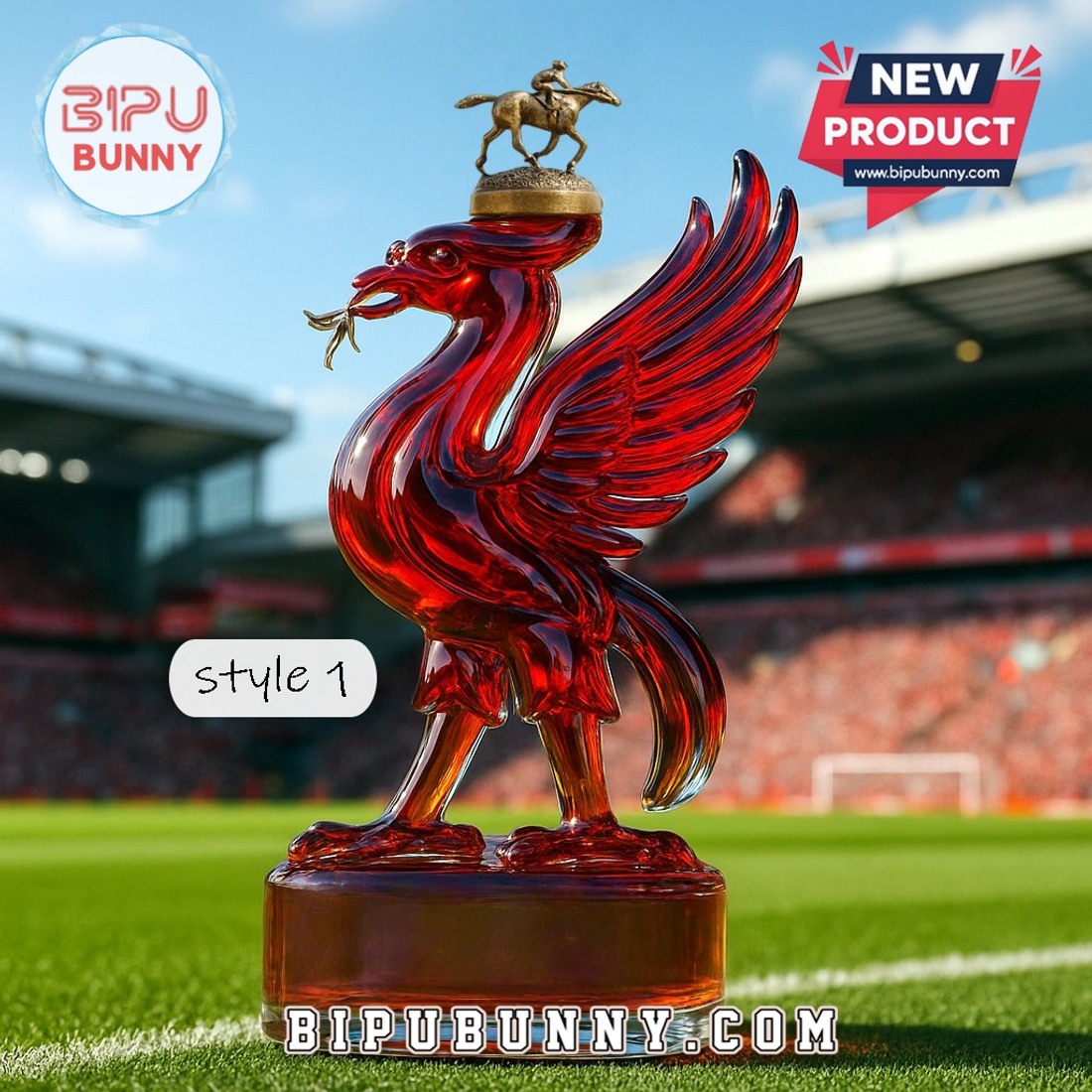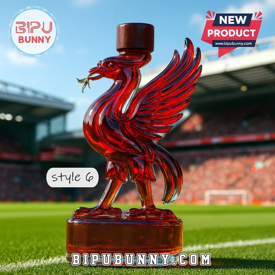 The Liverpool F.C. Special Edition Whiskey Bottle is a unique collector’s item that beautifully combines the passion of football with the art of fine spirits. This striking decanter, shaped like the iconic Liver Bird, is made from high-quality red glass, reflecting the team’s signature color. Six distinct styles are available, each featuring a different stopper, making every piece a unique work of art. The classic Style 1 includes a golden jockey on horseback stopper, a nod to the club’s history. Style 2 has a black bottle cap stopper with a brand logo, while Style 3 is crowned with a regal golden stopper. For a simpler look, Styles 4, 5, and 6 feature elegant cylindrical stoppers in red, green, and brown, respectively. Each decanter sits on a detailed base and is carefully designed to showcase a rich, dark liquid. This bottle is a statement piece for any home bar, a special display for a trophy cabinet, or a standout gift for a dedicated fan, blending functionality with a tribute to a legendary club. Its design ensures a secure seal, keeping the whiskey fresh for those special moments.