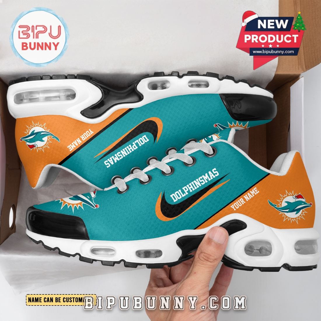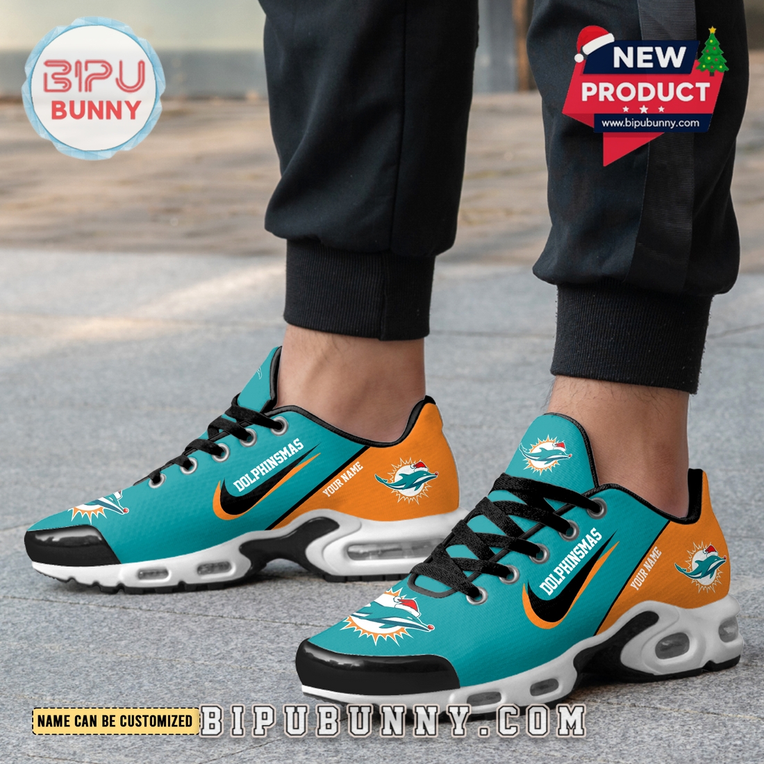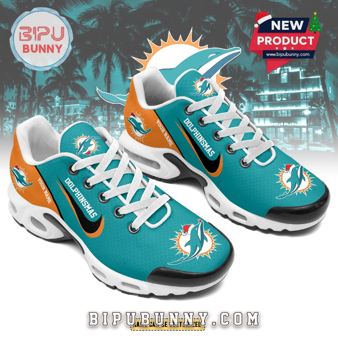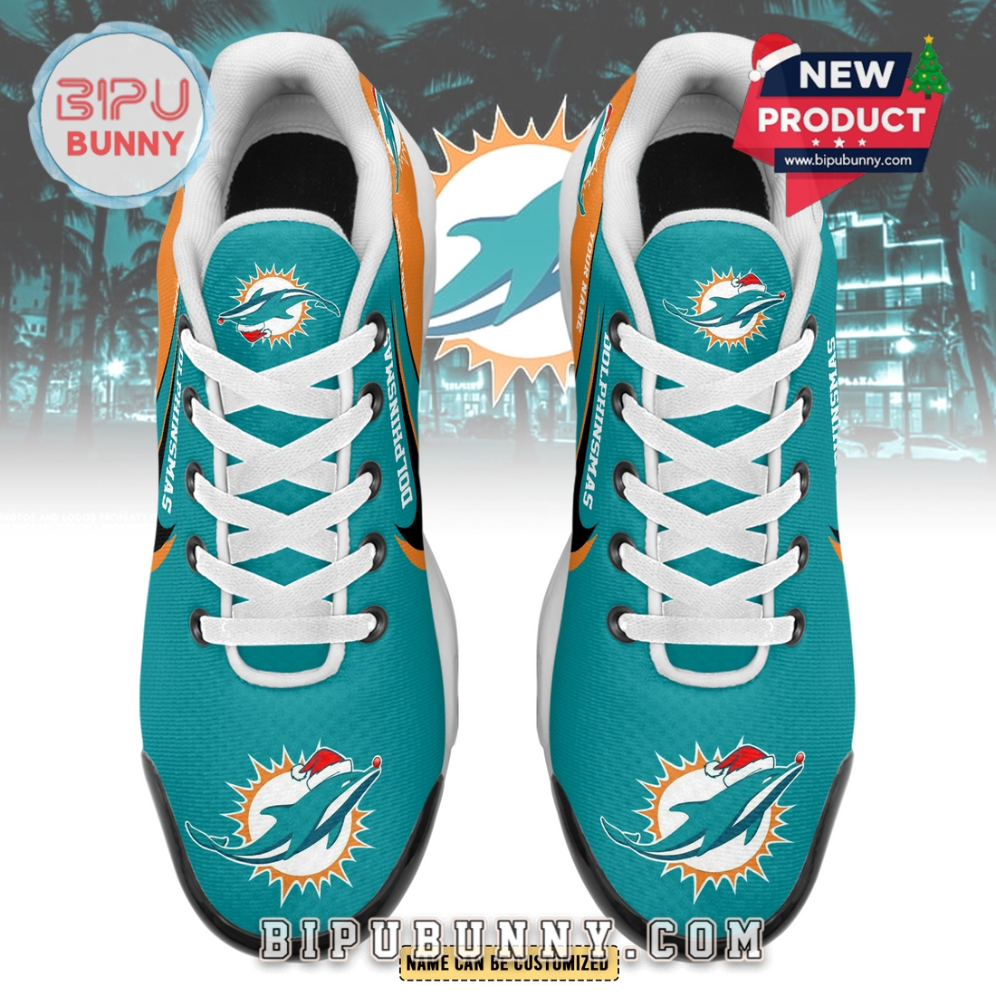 If you want footwear that reflects Miami Dolphins spirit in a bright and modern way, these TN shoes offer a great mix of personality and comfort. Fans often enjoy the blend of team graphics with the sporty TN shape, which gives the sneakers a strong visual identity. The holiday hat detail adds a fun twist that makes the design feel even more special.