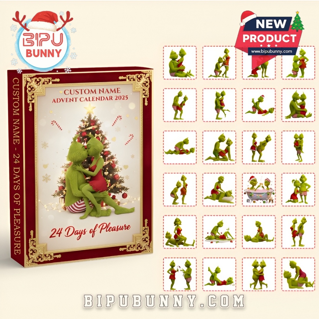 Shop high-quality Naughty Green Couple Christmas Advent Calendar 2025 at Bipubunny and bring a daily dose of joy to the holiday season. Limited