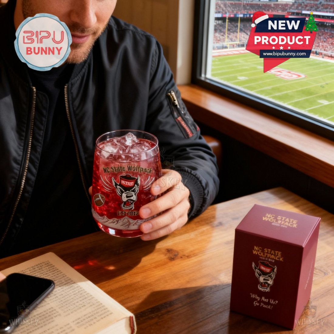 Made from premium, durable glass, this piece is solid in hand and designed to last through years of toasts and tailgates. Its weighted base adds balance, while the smooth rim enhances the drinking experience. On the back of the matching gift box, fans will find the spirited phrases “Why Not Us?” and “Go Pack!” — adding even more emotional connection for true NC State supporters. This whiskey glass isn’t just for drinks — it’s a keepsake, a conversation starter, and a show of loyalty, all in one.