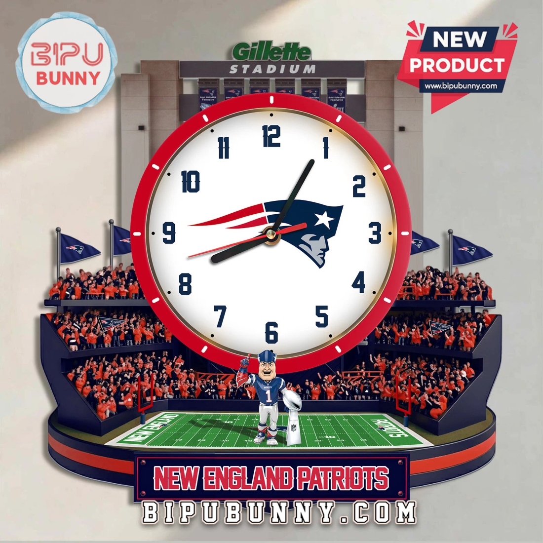Patriots 3D Stadium Wall Clock: Unique Die-Cut Design