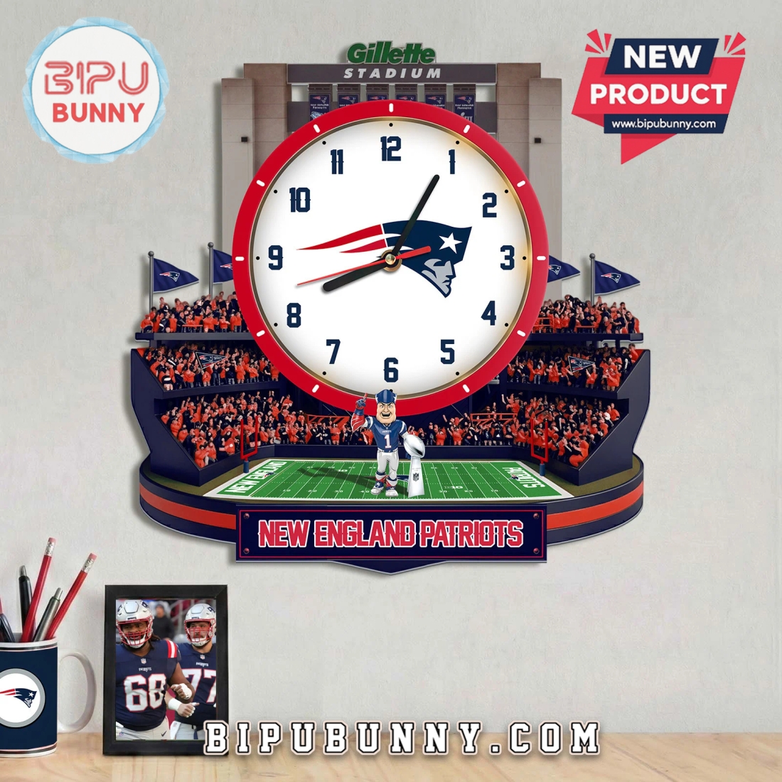 Transform any room into a dedicated fan zone with this striking Patriots 3D stadium clock. Each glance recreates the energy of game day, offering a constant reminder of iconic victories and unforgettable moments. This isn’t just a clock; it’s a daily celebration of your team. Experience the thrill of Gillette Stadium, right on your wall.