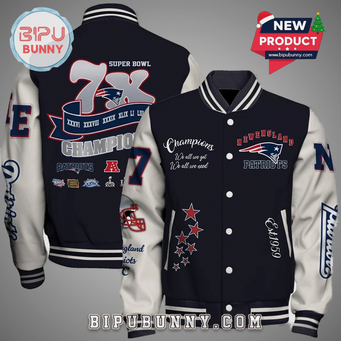 Shop high-quality New England Patriots 7X Super Bowl Champions Varsity Jacket at Bipubunny and enjoy exclusive discounts on a wide range of stylish designs. Don’t miss out on our amazing deals.