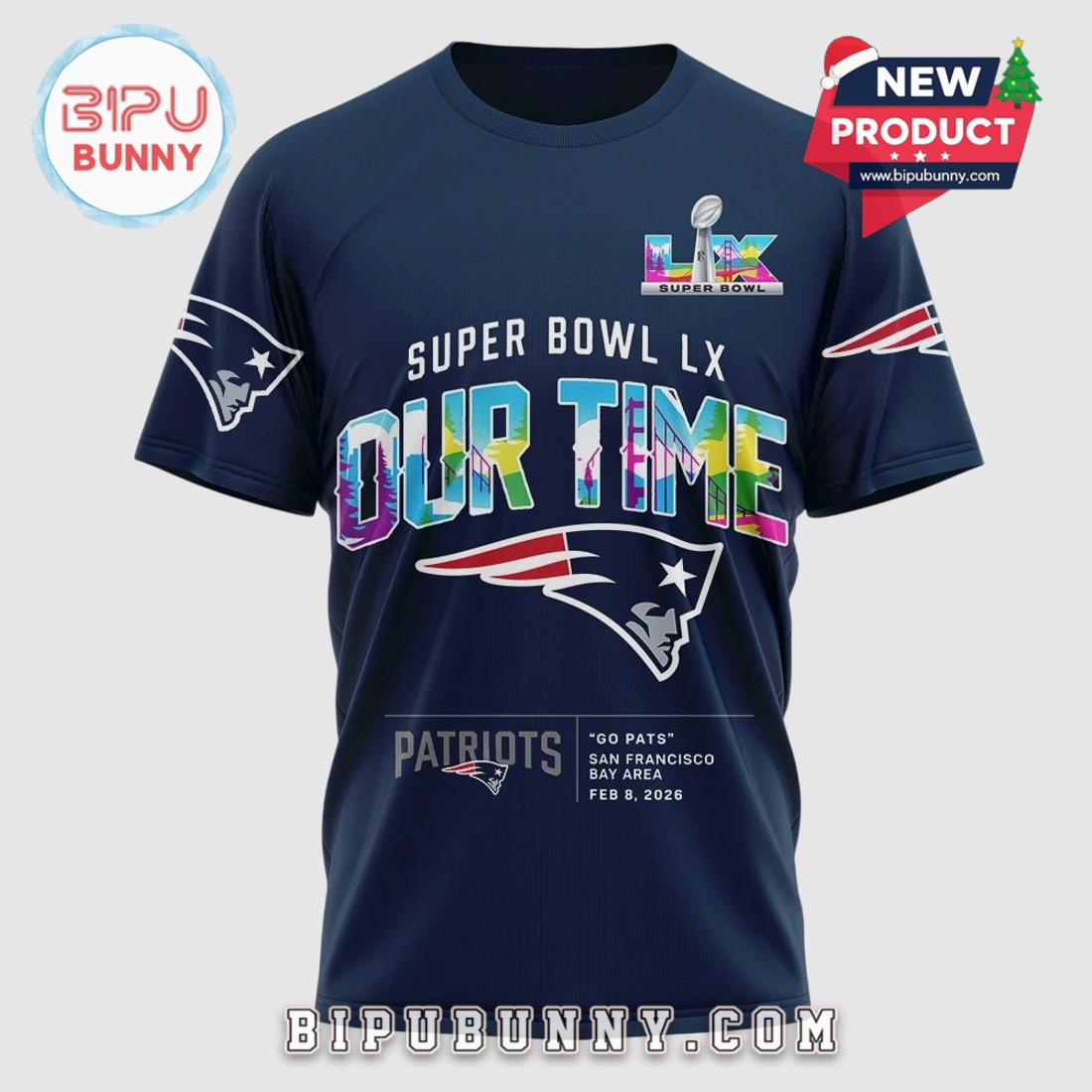 Celebrate Patriots Super Bowl LX victory. This ‘Our Time’ commemorative shirt instantly connects you with fellow fans. Wear your pride.