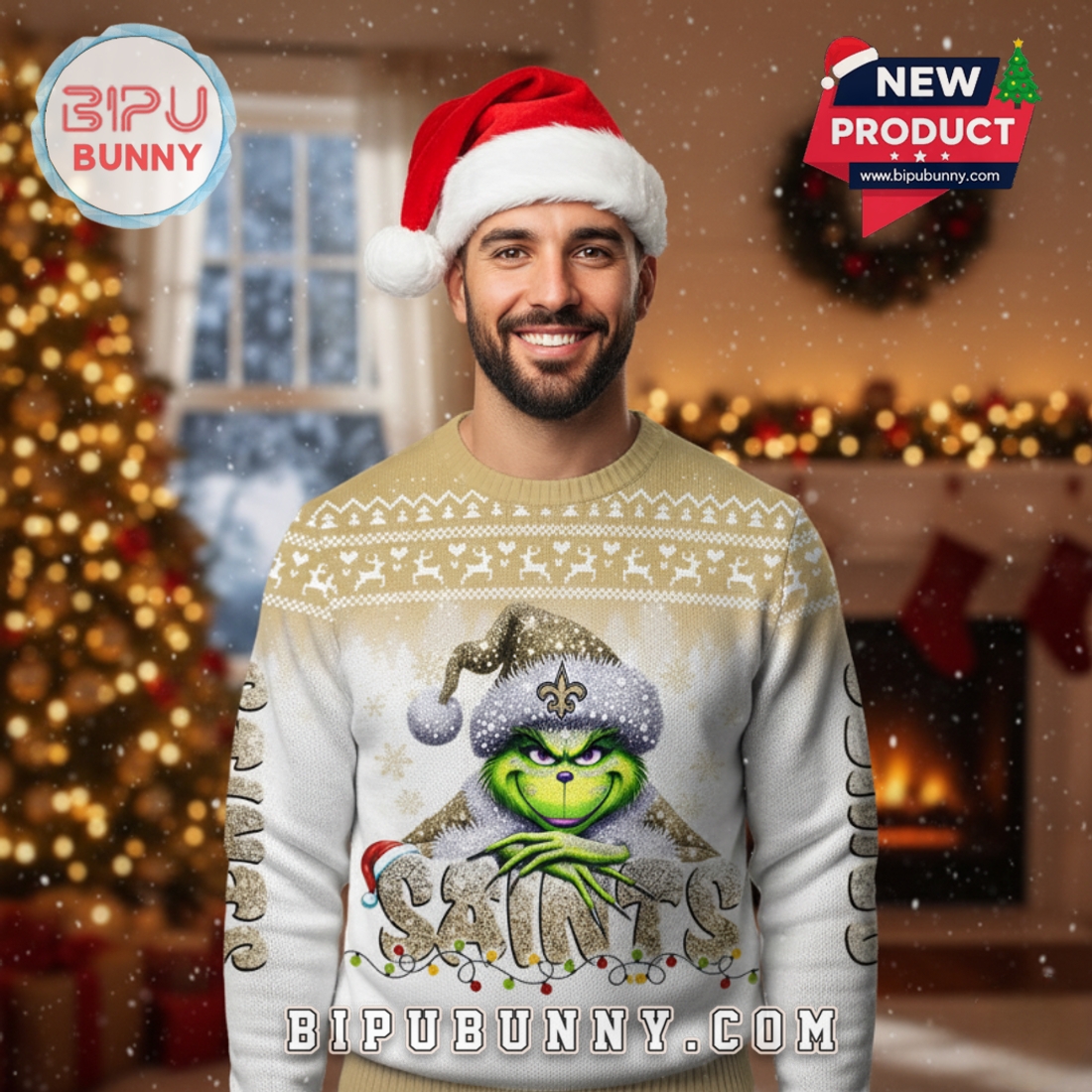 Shop high-quality New Orleans Saints Grinch Ugly Christmas Sweater 2025 at Bipubunny and enjoy exclusive discounts on cozy, all-over print holiday sweaters. Discover fun, festive designs for Adults & Kids – perfect for parties, family photos, and everyday cheer.