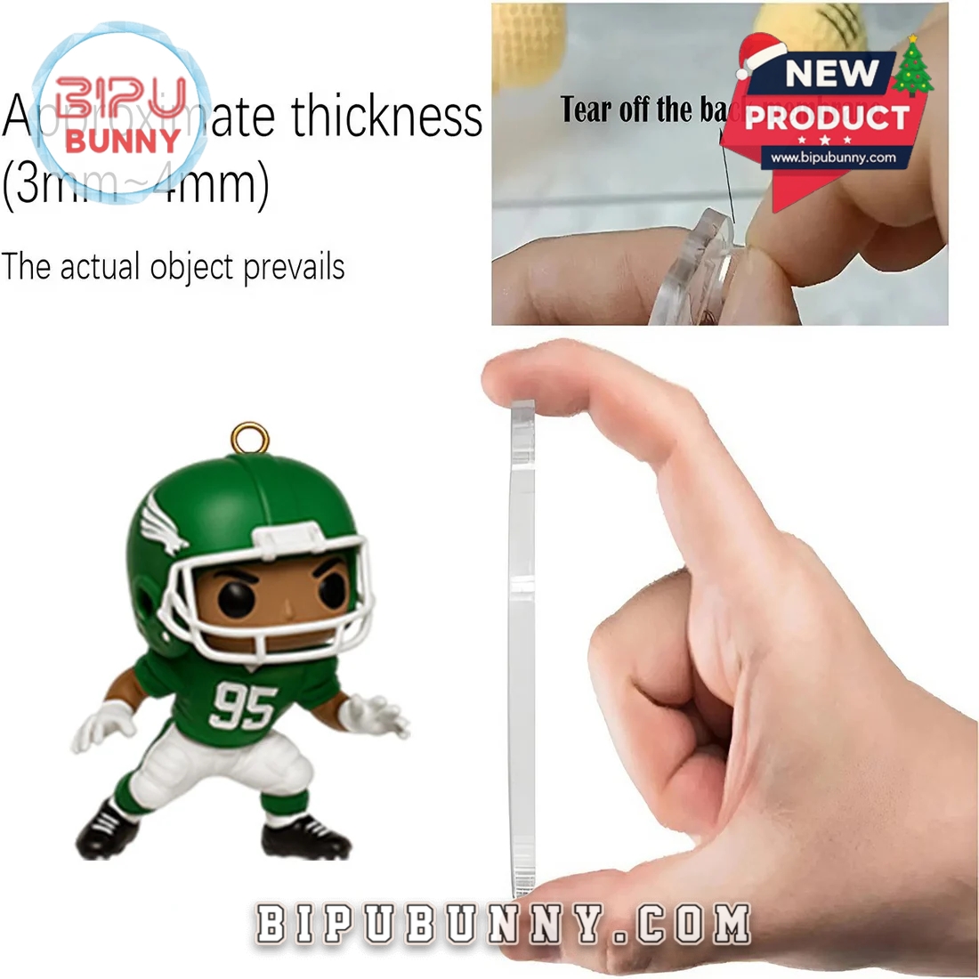 Inside are 24 themed ornaments, each one hidden behind a daily door. The ornaments are made from solid 3–4mm acrylic, giving them a sturdy yet lightweight feel. They feature smooth, rounded edges and high-quality double-sided printing. Each piece has a small golden loop at the top for easy hanging. You’ll find items like a mini helmet with a Santa hat, player figurines, a green stadium mug with whipped cream, team jersey, gift boxes, goalpost, and even a sled with the eagle logo printed on top.