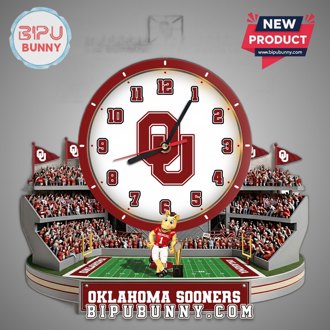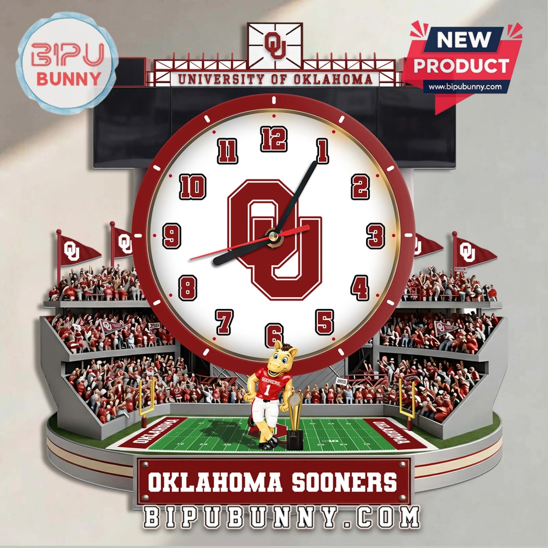 Bring Gaylord Family Oklahoma Memorial Stadium home. This 3D effect clock celebrates Sooners loyalty daily.