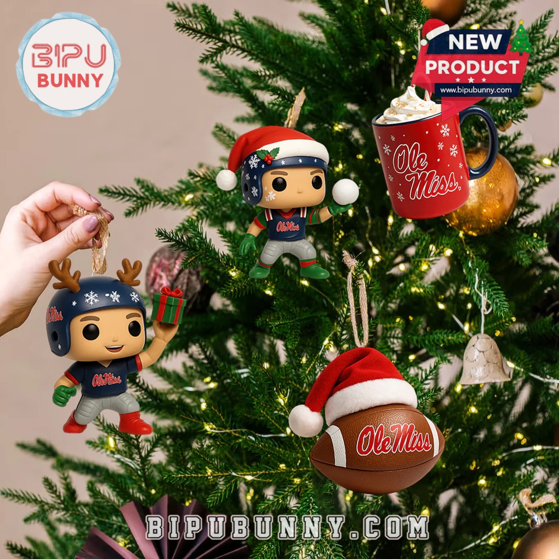 Inside, you’ll find 24 unique, team-themed ornaments and figurines, each tucked behind a daily perforated window. These include football player figures in Ole Miss uniforms, elf mascots, mugs, snow globes, Santa Claus in Rebels gear, mini trucks, and festive helmets. Each item is made from sturdy acrylic or plastic (approximately 3–4mm thick), with bright colors and clean printing. Many have a loop for hanging on your tree or decorating your home, and some stand upright for display.