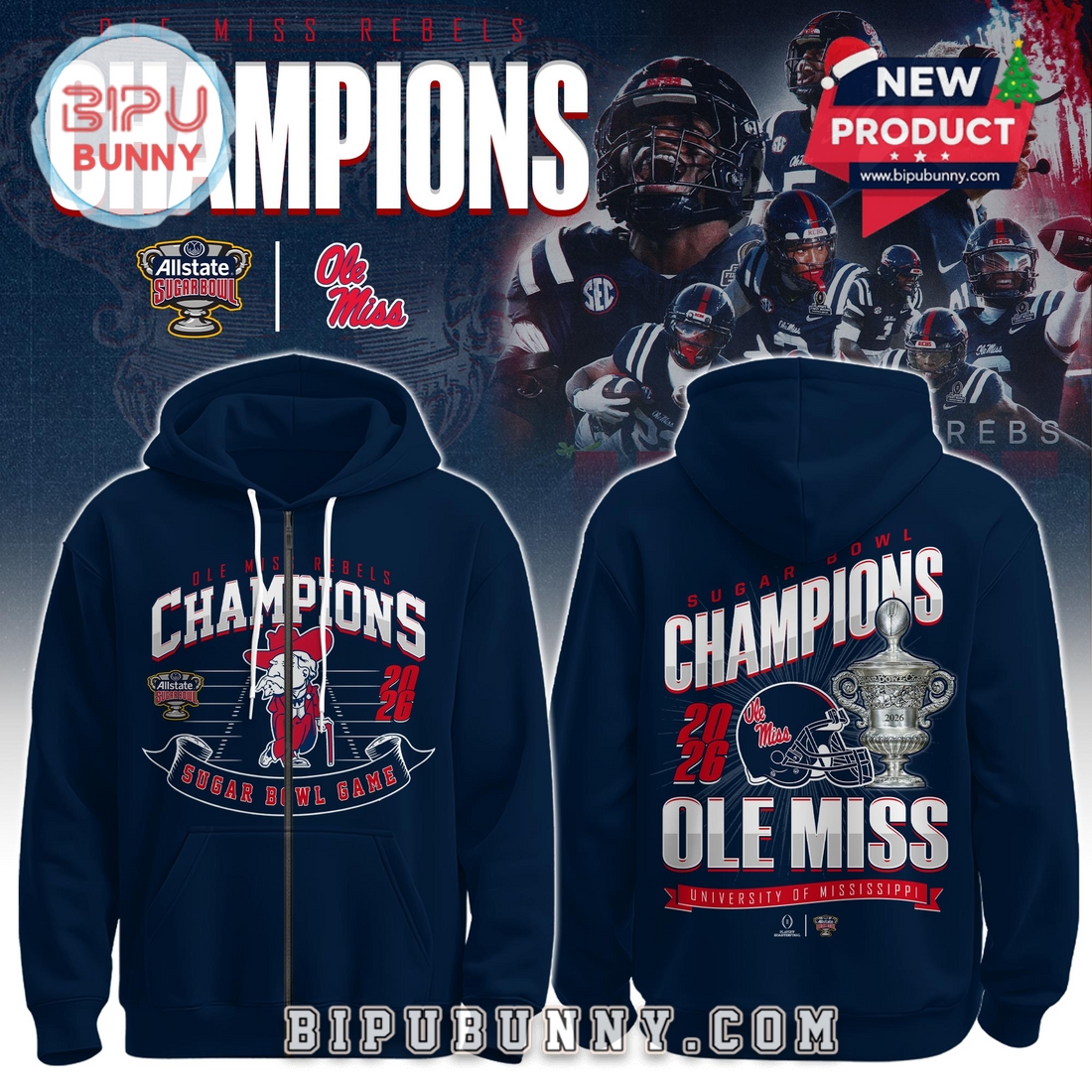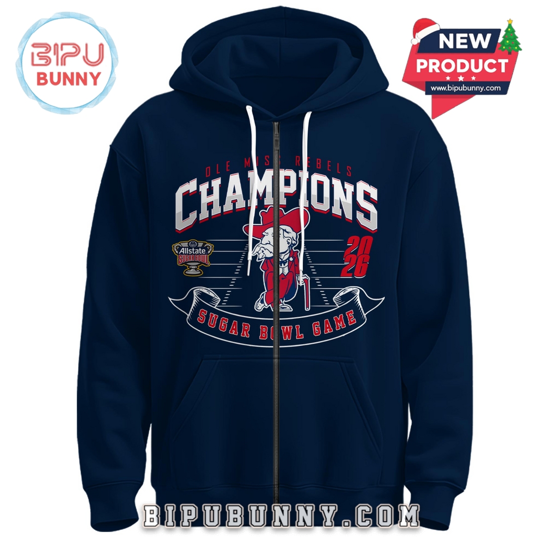 Ole Miss Rebels Sugar Bowl Champions Navy Hoodie 2026