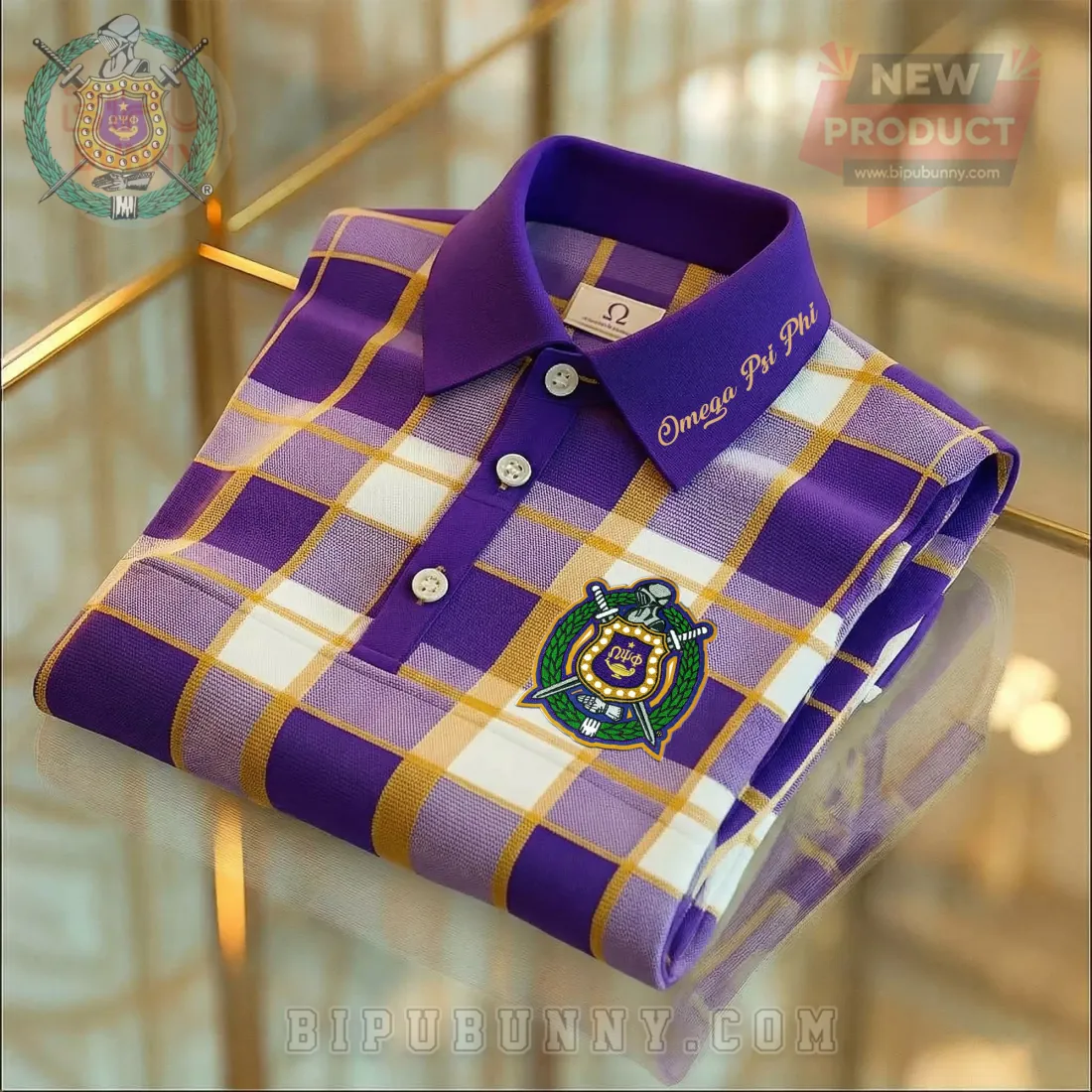 This Omega Psi Phi Men’s Embroidered Purple Gold Plaid Polo Shirt stands for those who hold their allegiance deep, never bending, never breaking, always true to the bond.