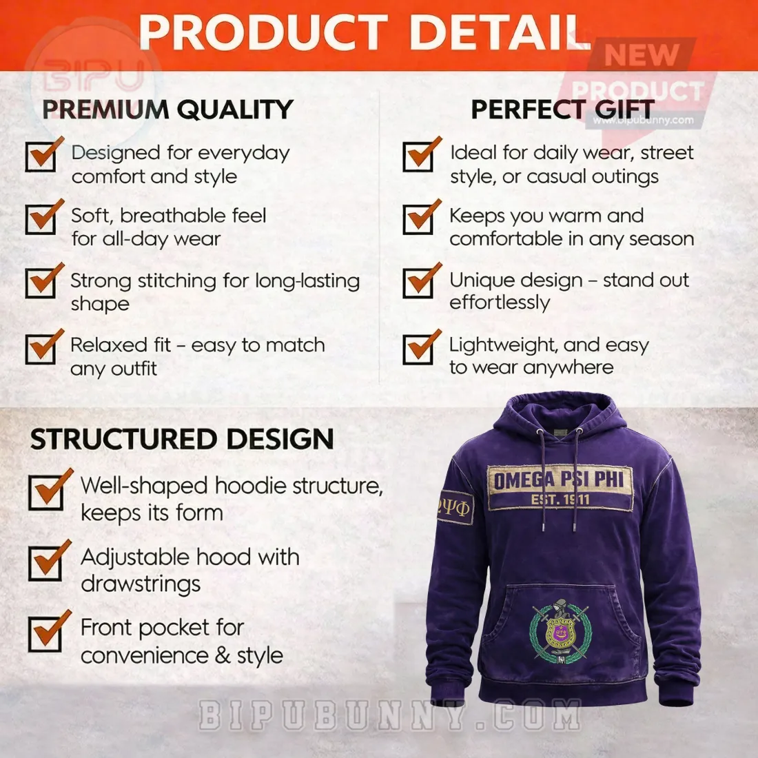 This Omega Psi Phi Ques hoodie is for those who stand firm. Your allegiance runs deep, from 1911 to forever. No fair-weather fans here, just pure, unyielding pride.