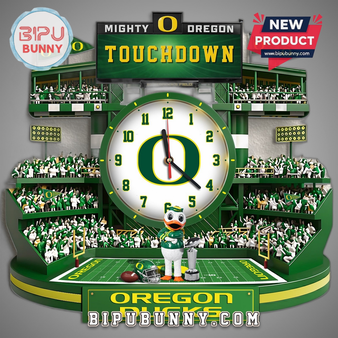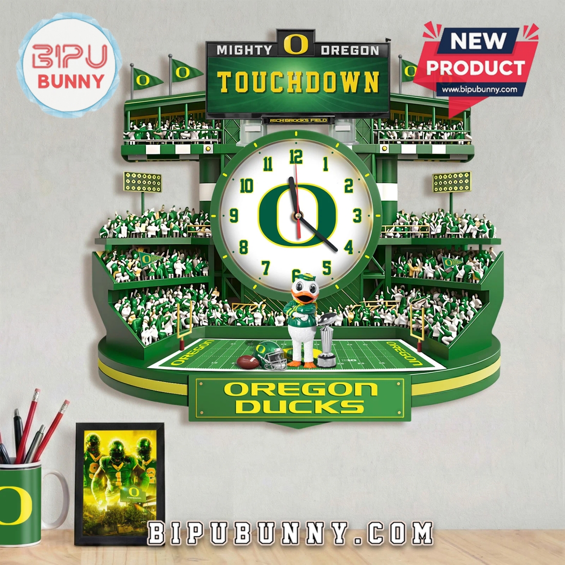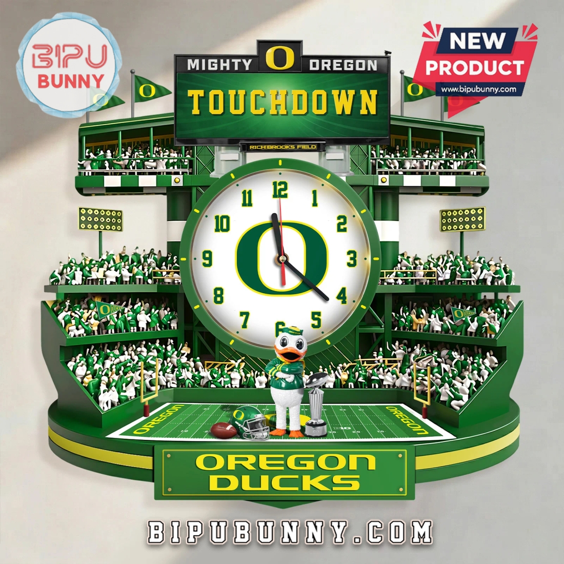 Bring Autzen Stadium home! This die-cut acrylic clock features a multi-layered 3D visual effect, perfect for any Ducks fan.