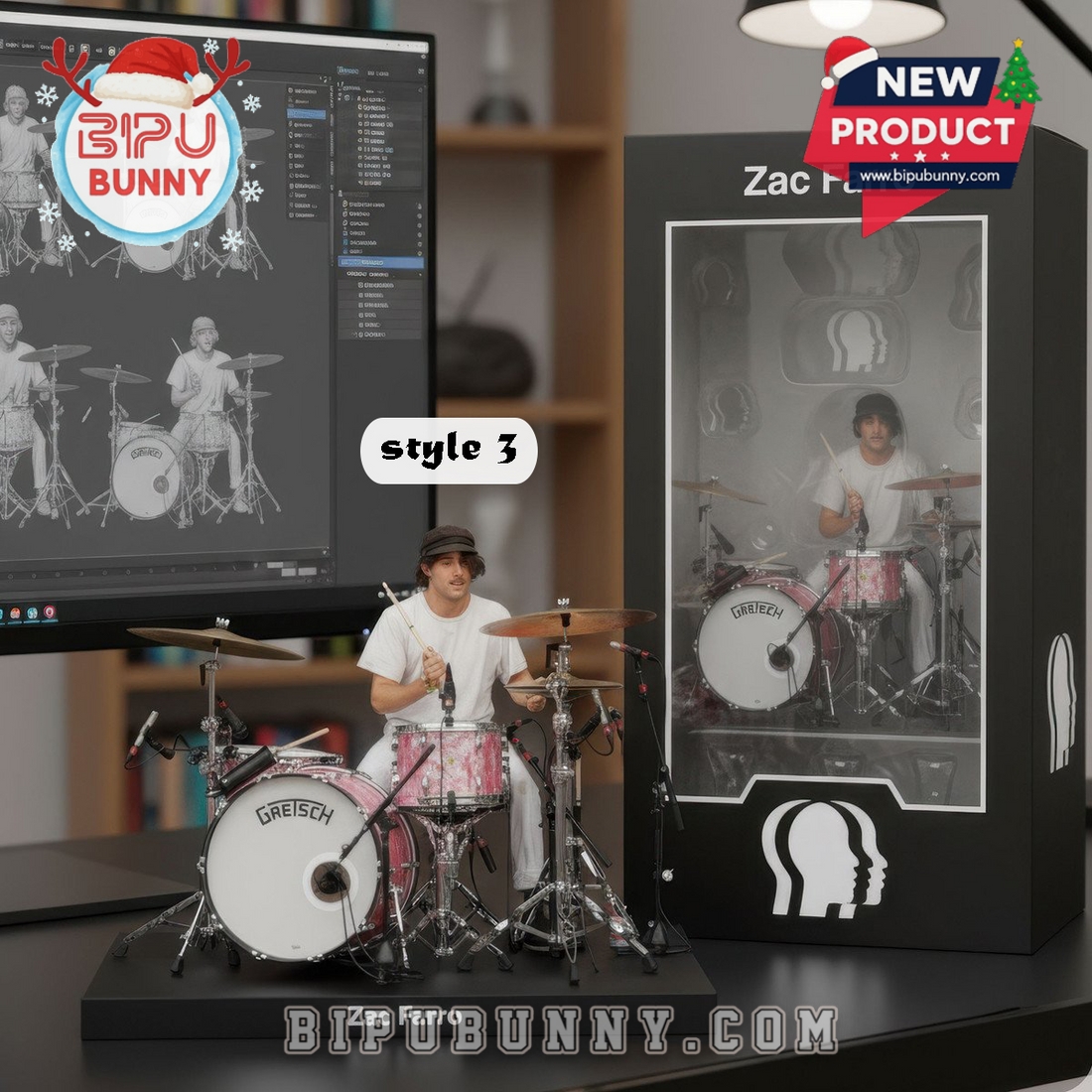 - Style 3: Zac Edition – Adds a soft gray drum kit shadow behind the silhouettes, visible only at close glance for a hidden layer of detail.
