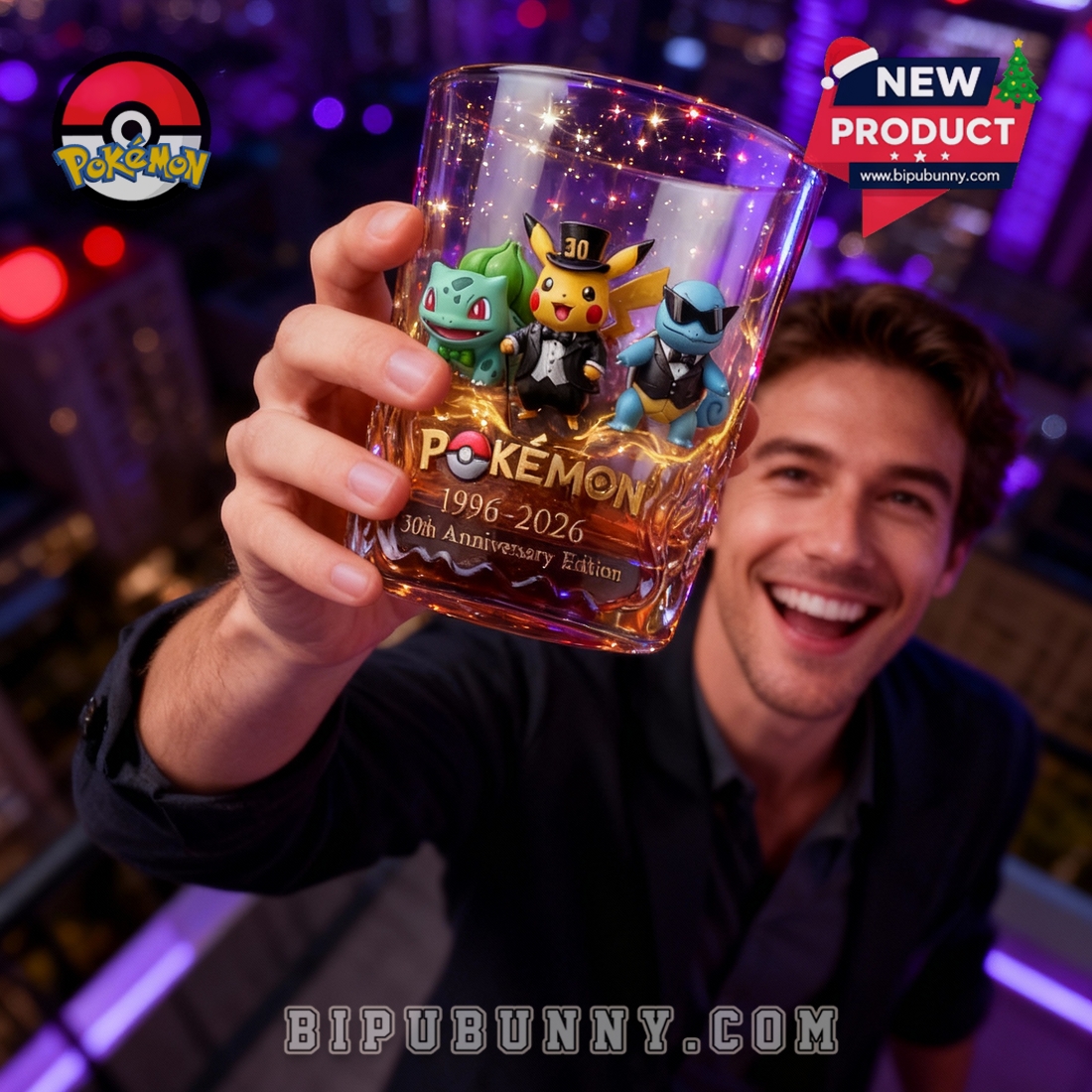 Add the Pokemon Pikachu Bulbasaur Squirtle 30th Anniversary Whiskey Glass to your collection today to enjoy a practical keepsake that honors three decades of Pokémon history. Check availability now secure yours while supplies last and keep an eye on future anniversary releases to complete your set.
