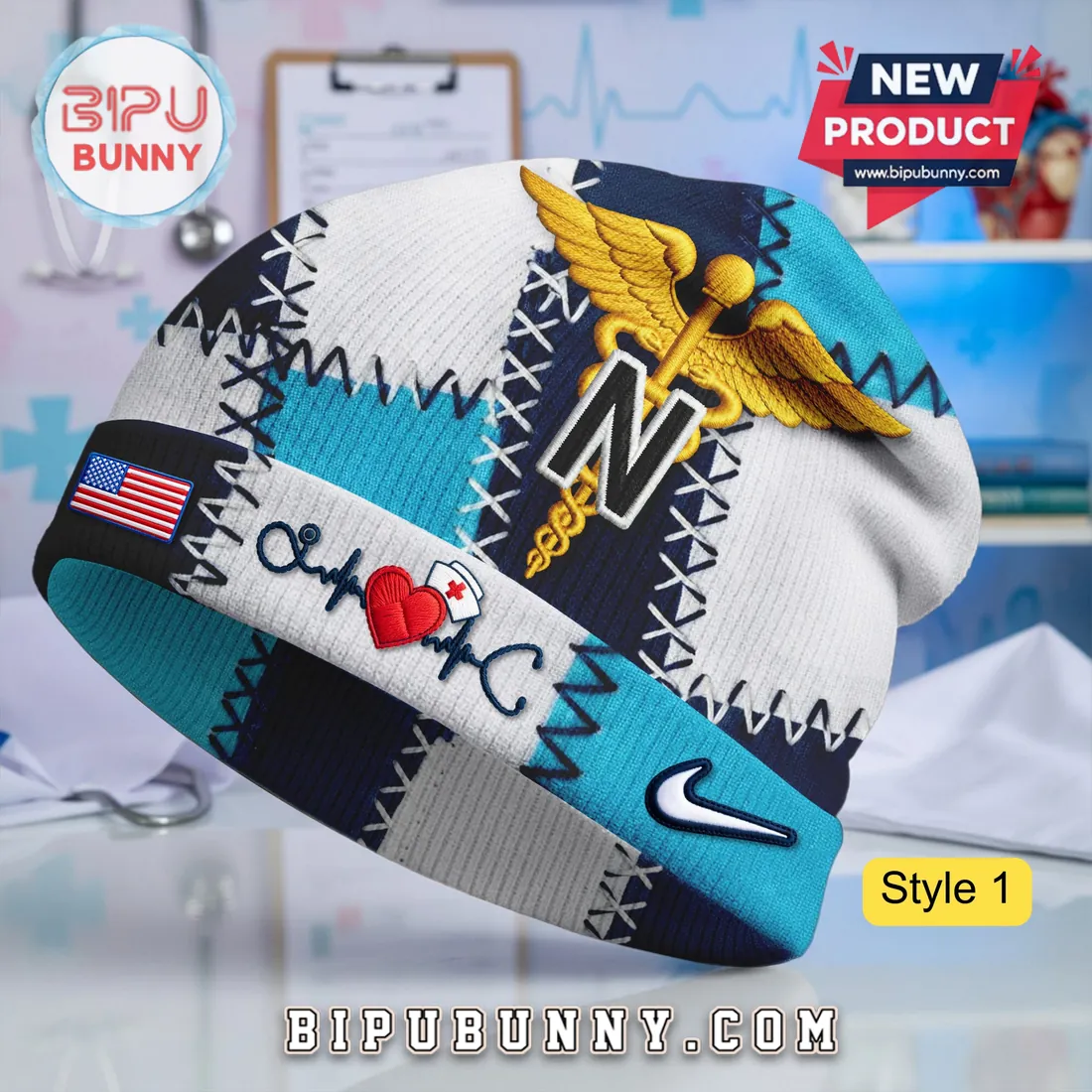 Get your Premium Nurse RN Heartbeat Caduceus Patchwork Winter Beanie Hat today and stay cozy in style all season long.