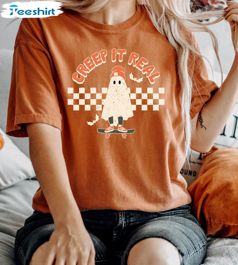 Retro Halloween Comfort Shirt, Creep It Real Vintage Short Sleeve Unisex T-shirt