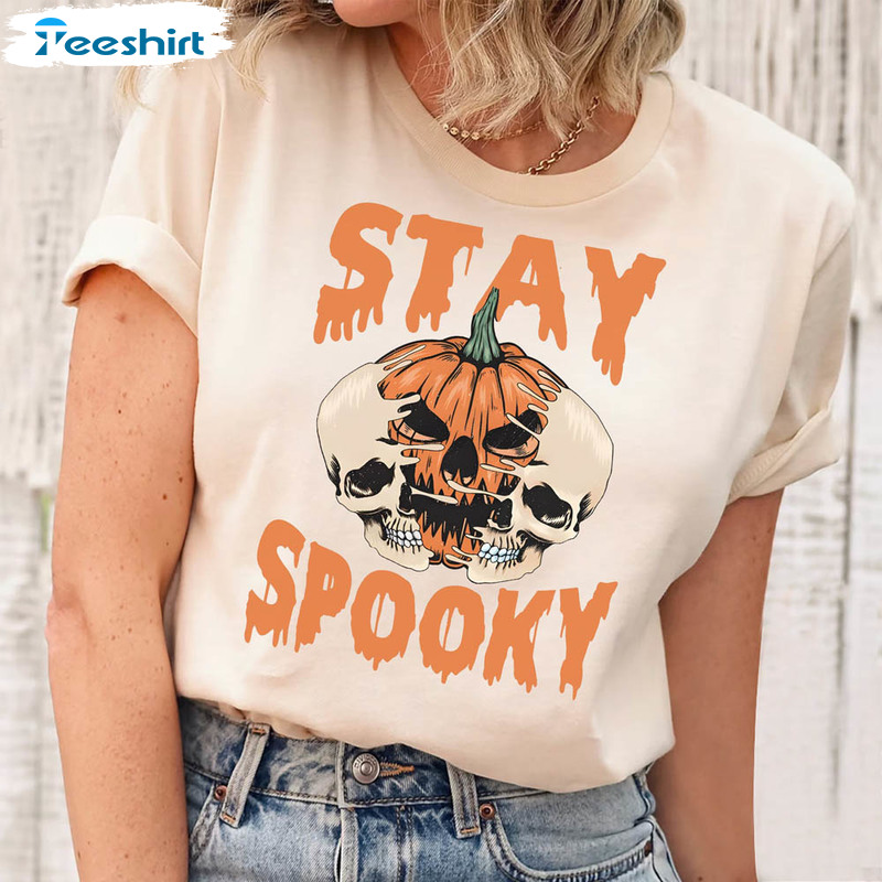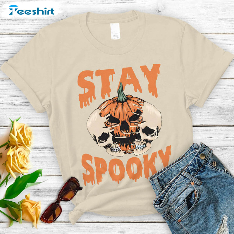 Retro Stay Spooky Shirt, Halloween Skeleton Short Sleeve Long Sleeve