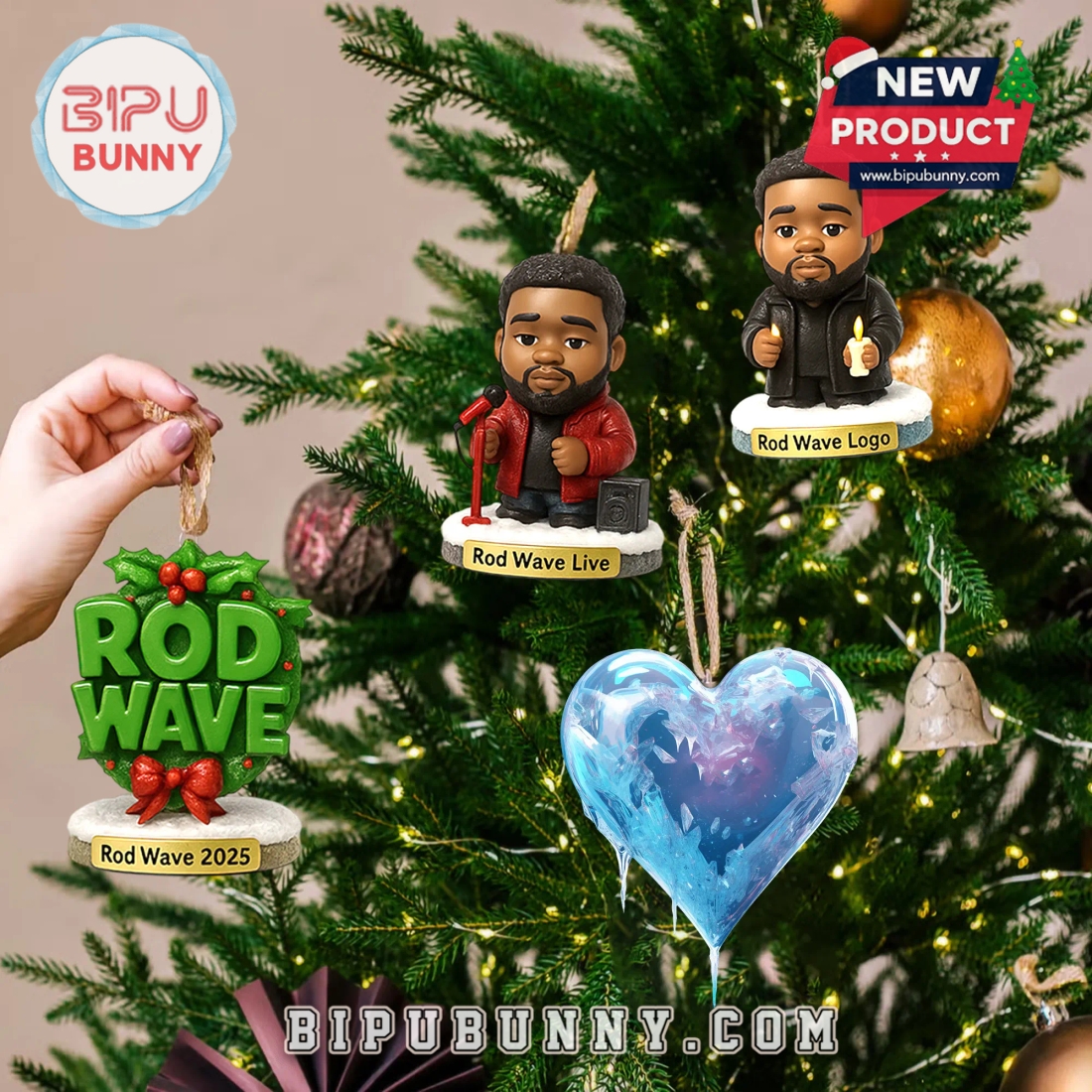 - Hooks on figures for easy hanging, so you can decorate your tree with Rod Wave-themed ornaments throughout the holiday season.