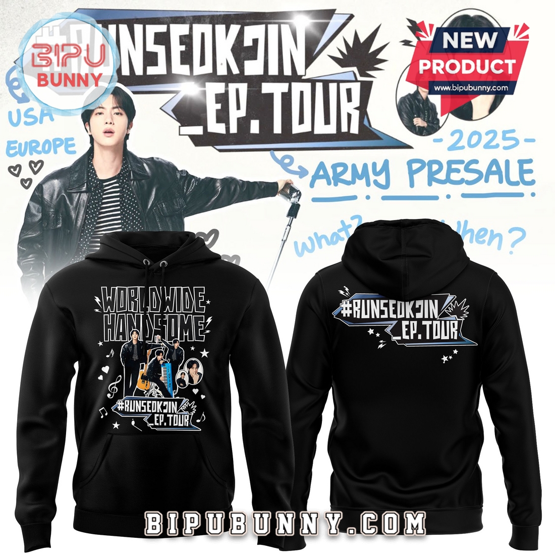 Indulge in an exquisite piece of K-Pop history with the Runseokjin Run Jin BTS The First Tour 2025 Black Hoodie – a collector’s item meticulously crafted for the discerning ARMY. This isn’t merely apparel; it’s a tangible embodiment of the electrifying energy and unparalleled artistry of Jin’s inaugural solo tour. The sleek, obsidian hue exudes a sophisticated aura, a stark contrast to the vibrant spectacle of the performances it commemorates. The design, subtly yet powerfully evocative of the tour’s thematic elements, speaks volumes without being ostentatious. It’s a testament to the confluence of artistic vision and unparalleled craftsmanship, a garment designed to transcend mere functionality and become a cherished keepsake. More than a hoodie, it’s a wearable emblem of belonging, a symbol of shared passion, and a sartorial affirmation of your unwavering devotion. This limited-edition piece offers a unique opportunity to possess a fragment of this unforgettable musical journey, a stylish and enduring memento to adorn your wardrobe and eternally preserve the memories of an exceptional concert experience. Own a piece of history; secure your Runseokjin Run Jin BTS The First Tour 2025 Black Hoodie today and become a part of the enduring legacy. This exceptional garment is not simply clothing; it is an investment in a moment in time, a cherished artifact for the ardent aficionado.