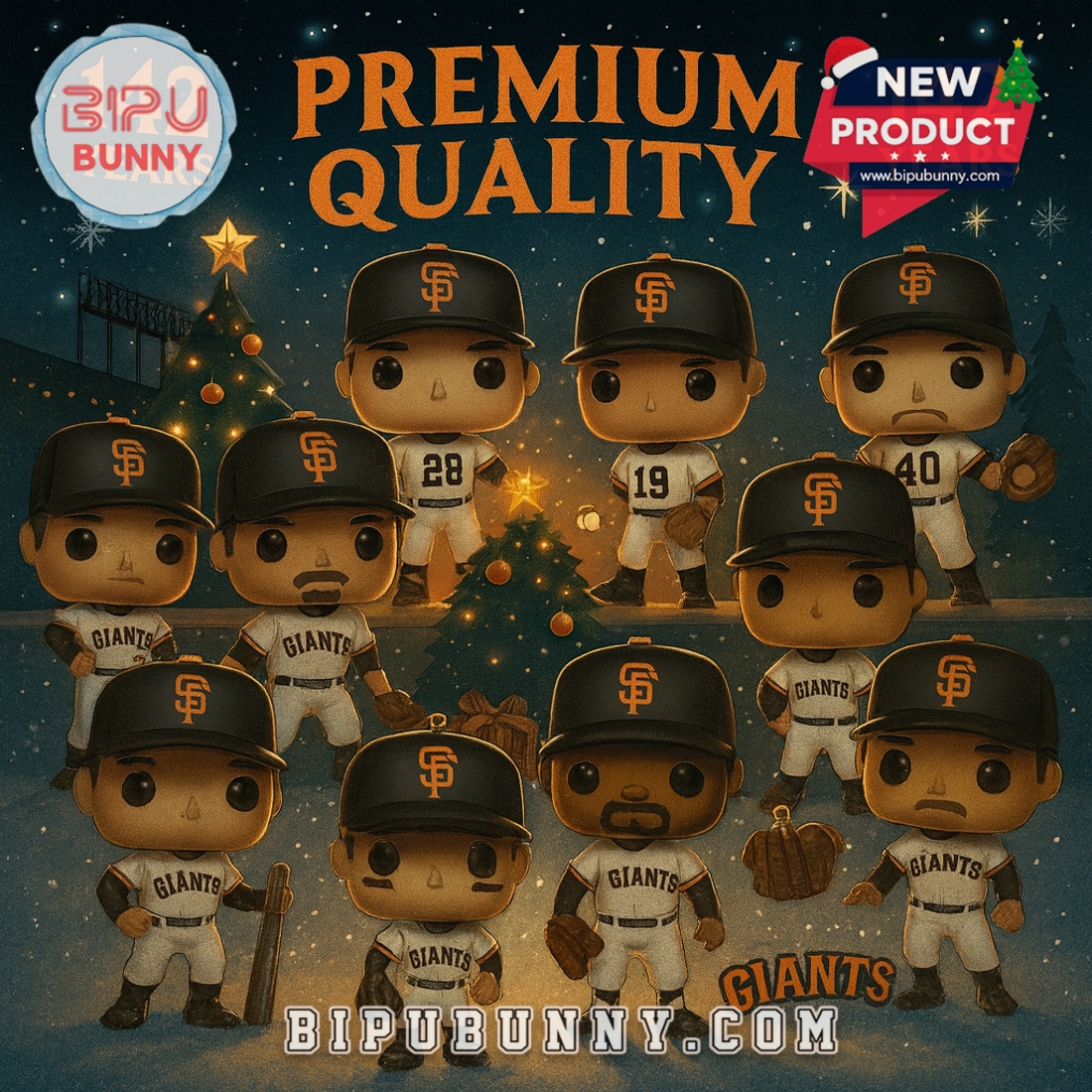 - Stylized Player Figures: Figures are dressed in the classic white home uniform, wearing the Giants cap and holding miniature baseball gear.