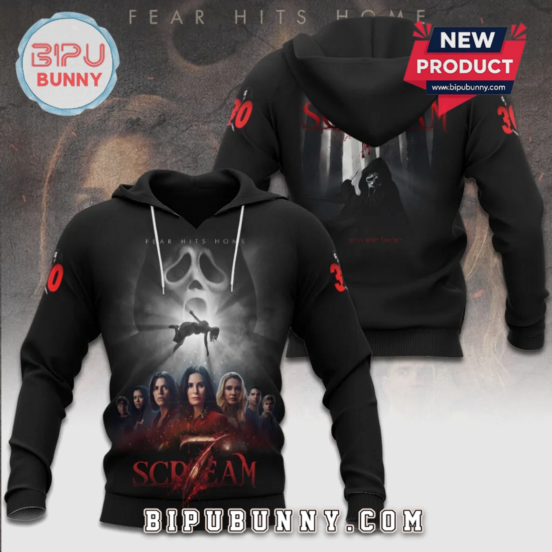 The Scream 7 Movie Fear Hits Home Graphic T-Shirt offers an authentic and compelling way for enthusiasts to showcase their dedication to the iconic horror franchise, blending comfort with a bold visual statement. This meticulously designed garment immediately captures attention with its central graphic, which masterfully encapsulates the dread and suspense synonymous with Scream. At its heart lies the chilling “Fear Hits Home” tagline, rendered in a distressed, impactful typography that evokes a sense of urgency and impending danger, a direct nod to the next chapter’s terrifying premise. Dominating the design is the unmistakable silhouette of Ghostface, presented with an ominous, shadowy presence that suggests both familiarity and renewed terror. The color palette typically leans into the horror genre’s aesthetic, often featuring a stark contrast of deep blacks or charcoal grays for the tee itself, allowing the crisp whites, chilling grays, and occasional blood-red accents of the graphic to pop with visceral intensity. This careful visual composition ensures that the shirt is not just a piece of merchandise, but a wearable piece of cinematic art, instantly recognizable and deeply resonant for fans.