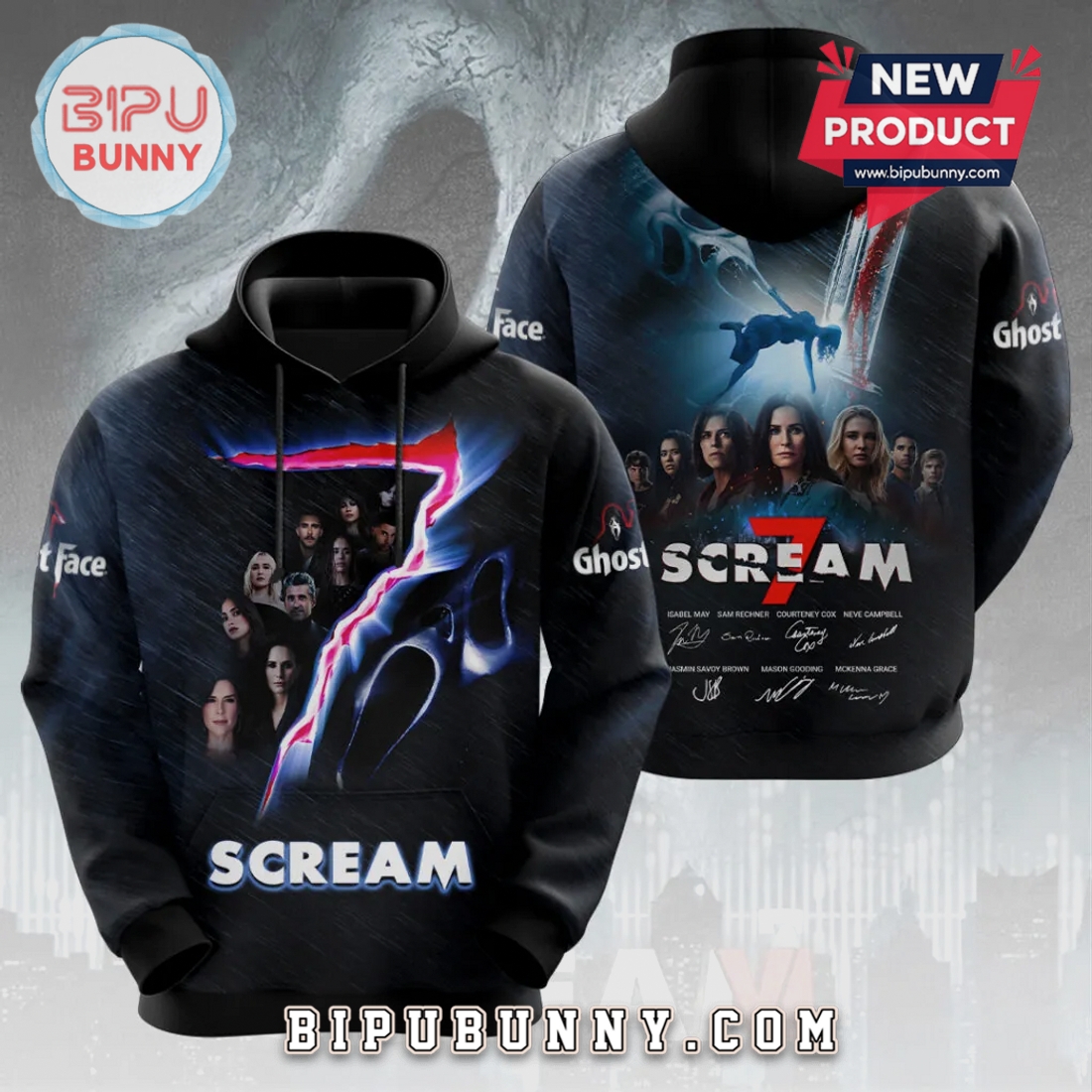 This garment stands as a definitive piece of fan apparel, meticulously designed to transport wearers directly into the chilling universe of the – Scream- franchise, specifically anticipating the terror of – Scream 7- . It’s not merely a shirt but a wearable cinematic experience, featuring the iconic Ghostface in a startlingly vivid, multi-dimensional presentation. The central design element, the “Ghost Face Cast,” captures the infamous killer in a dynamic, almost kinetic portrayal, ensuring every glance evokes the character’s relentless menace and the suspense that defines the films. This isn’t a static, flat image; the “3D Premium Graphic” technology employed here elevates the visual impact, lending genuine depth and texture to Ghostface’s haunting mask and flowing robes. Shadows appear to recede, edges seem to pop, and the overall effect is one of realism that pulls the eye in, making the figure seem poised to leap from the fabric. The premium quality ensures that these intricate details, from the subtle folds in the mask to the stark contrasts of light and dark, are rendered with exceptional clarity and a color vibrancy that remains true to the film’s dark aesthetic, resisting the dulling effects of wear or washing.