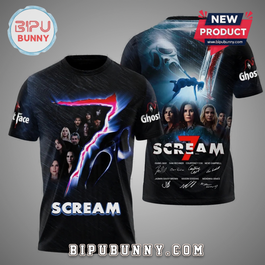 Scream 7 Movie Ghost Face Cast 3D Premium Graphic All Over Print T-Shirt