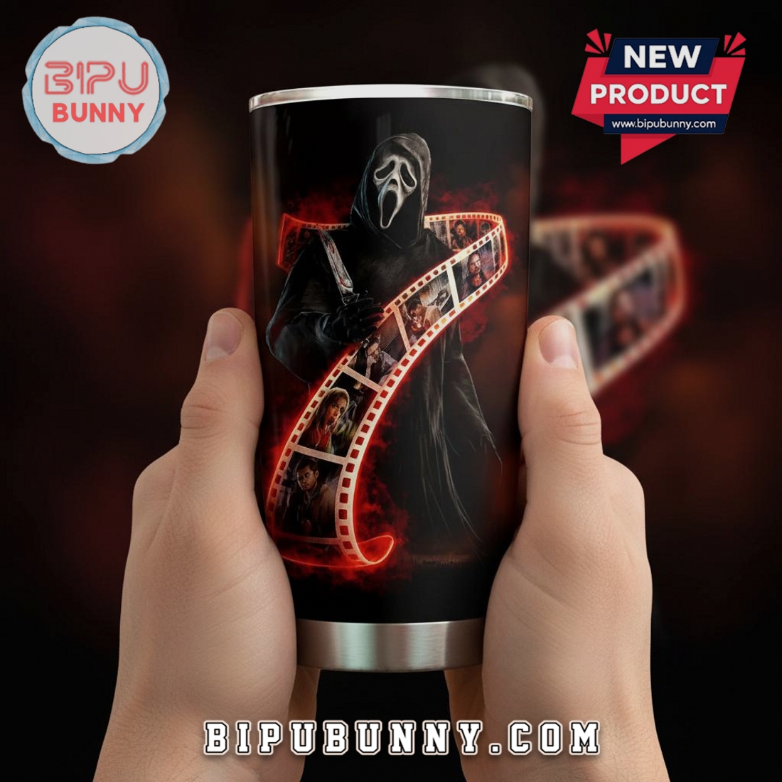 Relive Scream 7 terror daily. This premium Ghostface tumbler keeps drinks hot or cold for hours.