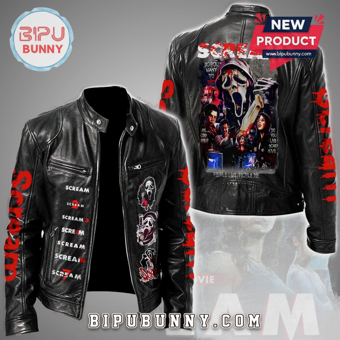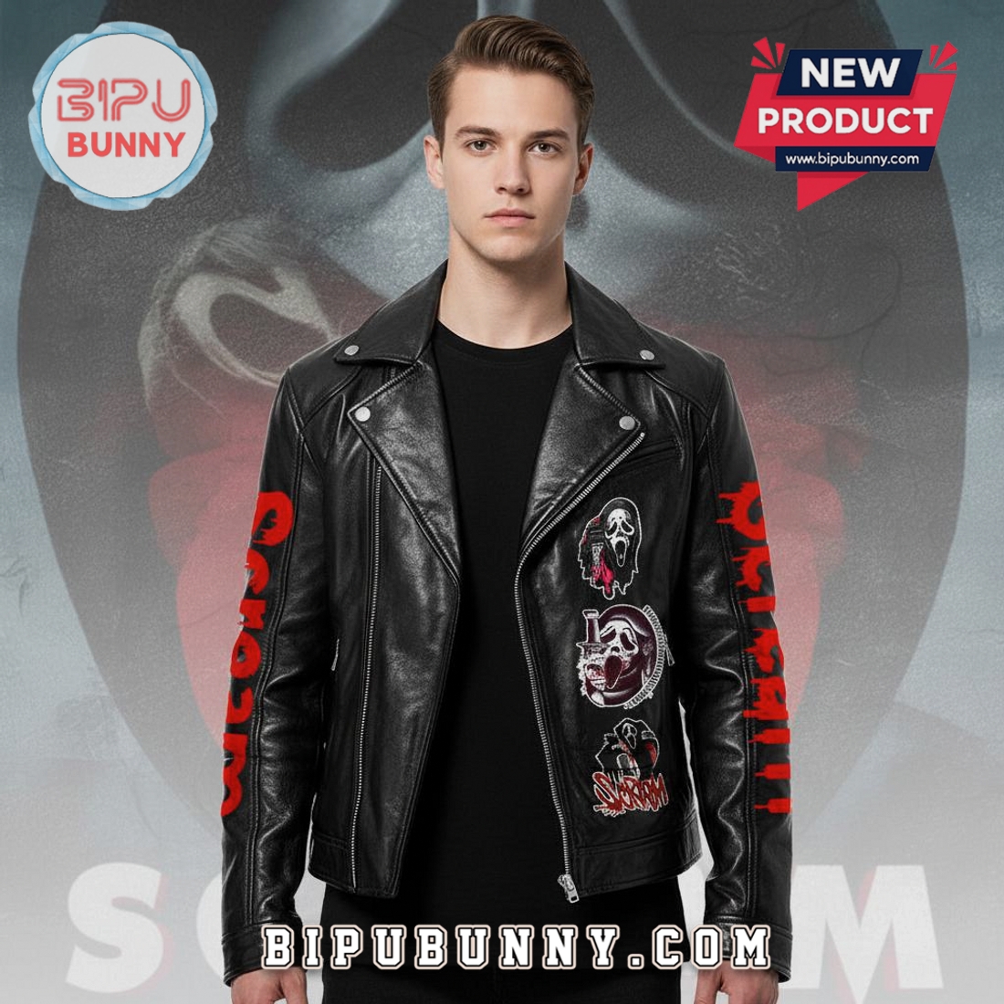 Command attention with this Ghostface Scream movie PU leather jacket. Iconic horror style meets durable, windproof comfort for year-round wear.