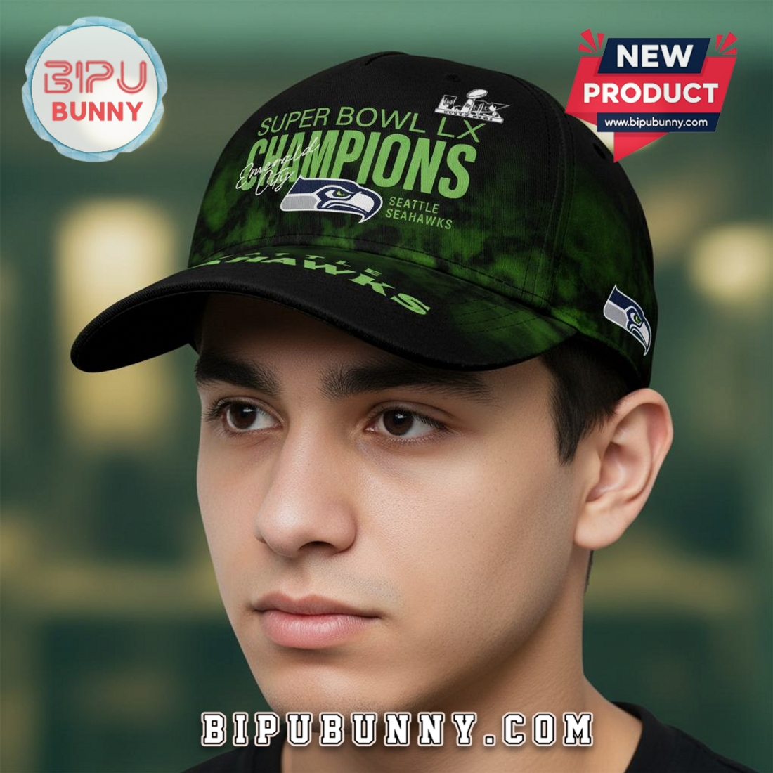This commemorative cap stands as a definitive testament to the Seattle Seahawks’ historic Super Bowl LX victory, offering fans an unparalleled piece of memorabilia that perfectly encapsulates the triumph and spirit of the Emerald City. Designed with meticulous attention to detail, this cap is more than just headwear; it is a wearable trophy, a symbol of unwavering loyalty, and a tangible connection to one of the franchise’s most glorious moments. The crown of the cap is expertly constructed from a premium, durable cotton twill, chosen for its robust feel, comfortable wear, and ability to hold its structured shape over time, ensuring it looks sharp whether worn to a game, displayed in a collection, or integrated into everyday fan apparel. The deep, iconic Seahawks action green and navy blue form the foundational palette, meticulously rendered to capture the team’s unmistakable identity, providing an immediate visual cue of allegiance.