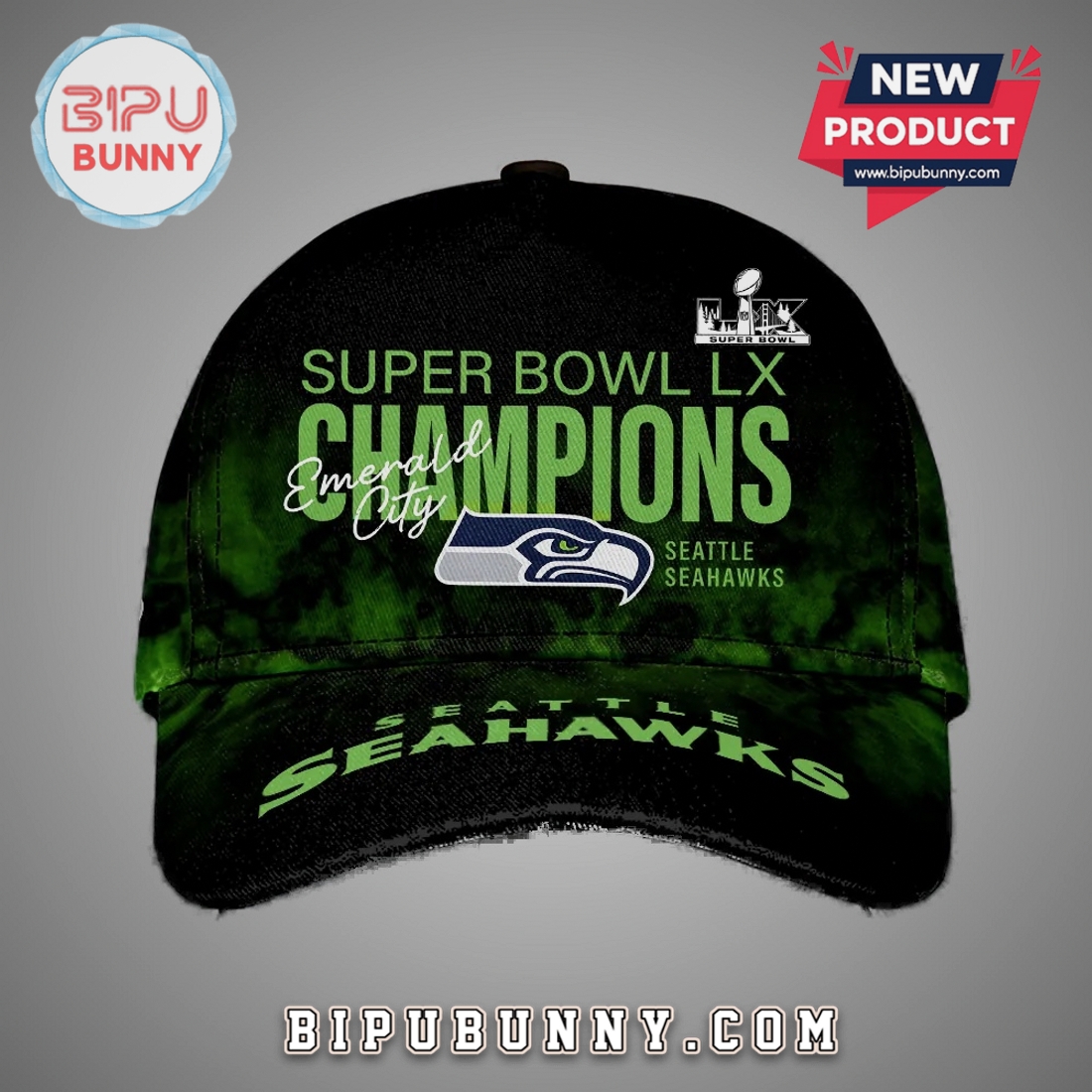 Grab your Seattle Seahawks Super Bowl LX Champions Emerald City Commemorative Cap today and enjoy the perfect blend of fandom and fashion.