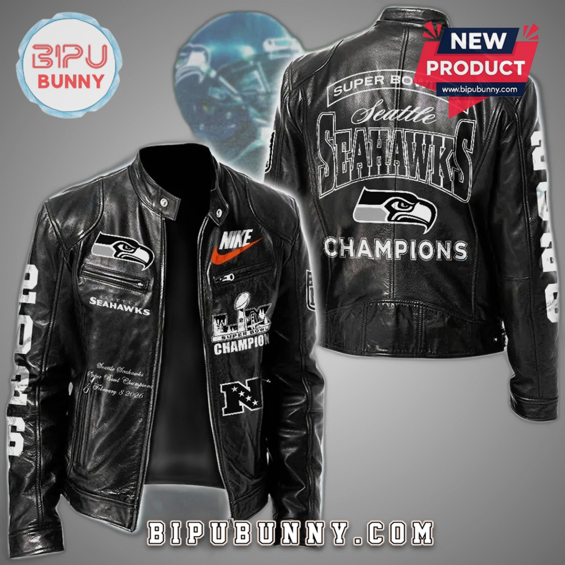 Seattle Seahawks Super Bowl LX Champions Premium Leather Jacket