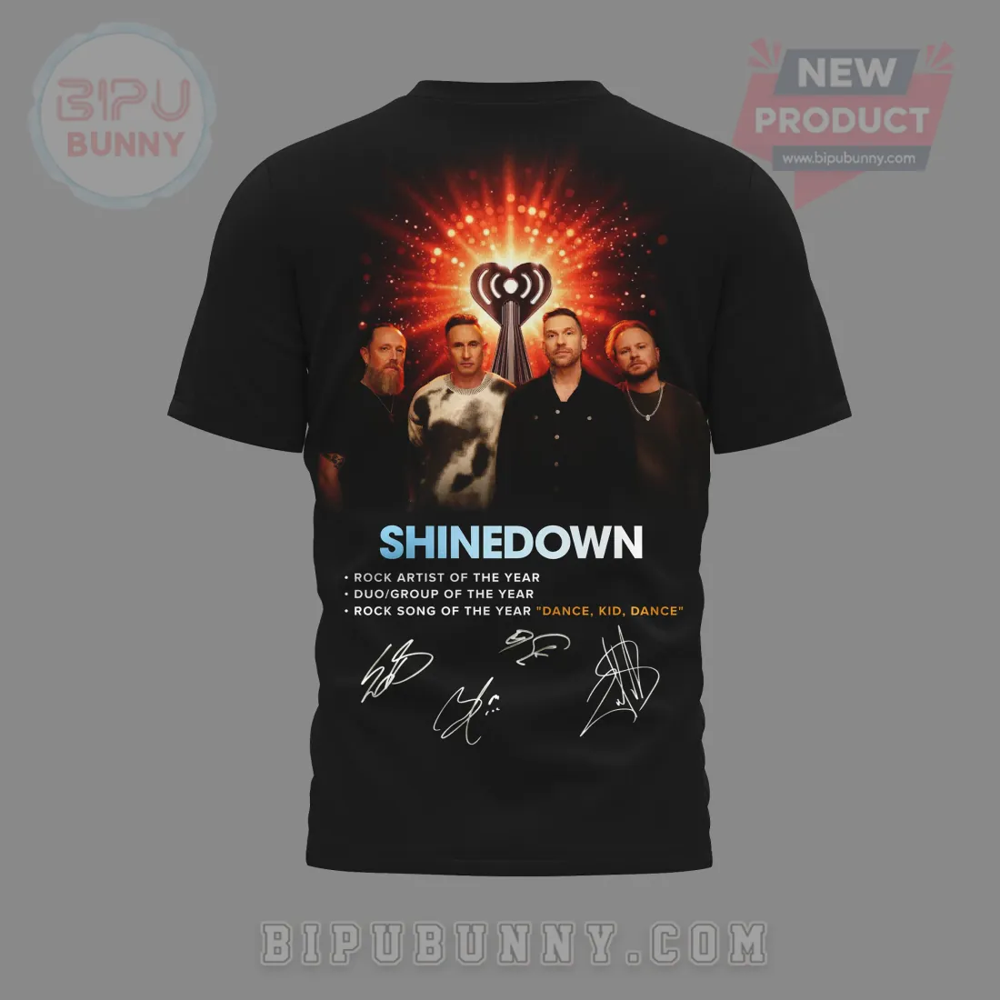 This Shinedown iHeartRadio Rock Artist Of The Year Signed T-Shirt isn’t just merchandise; it’s a testament to powerful graphic execution. True quality in band apparel shines through its visual details and the impactful aesthetic.