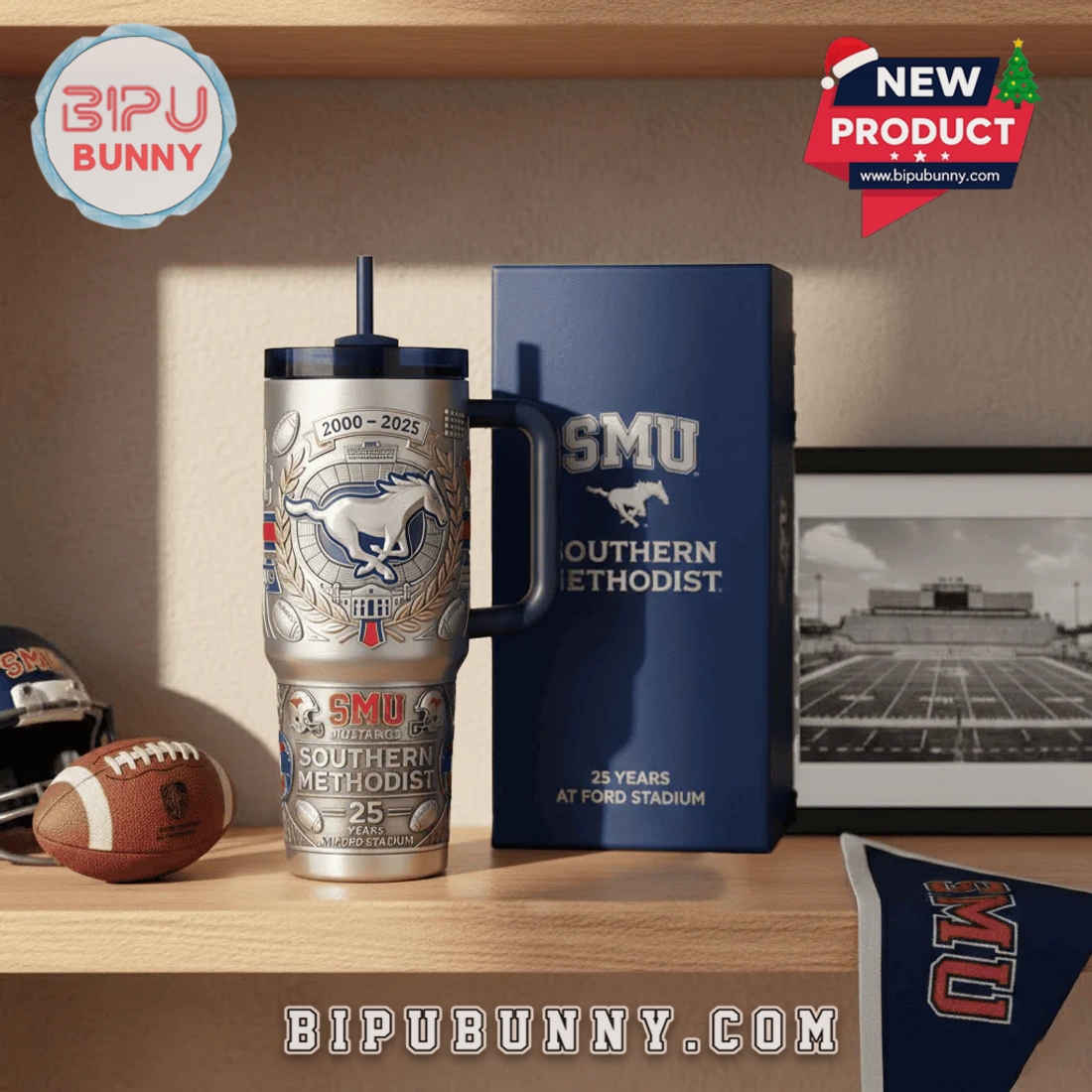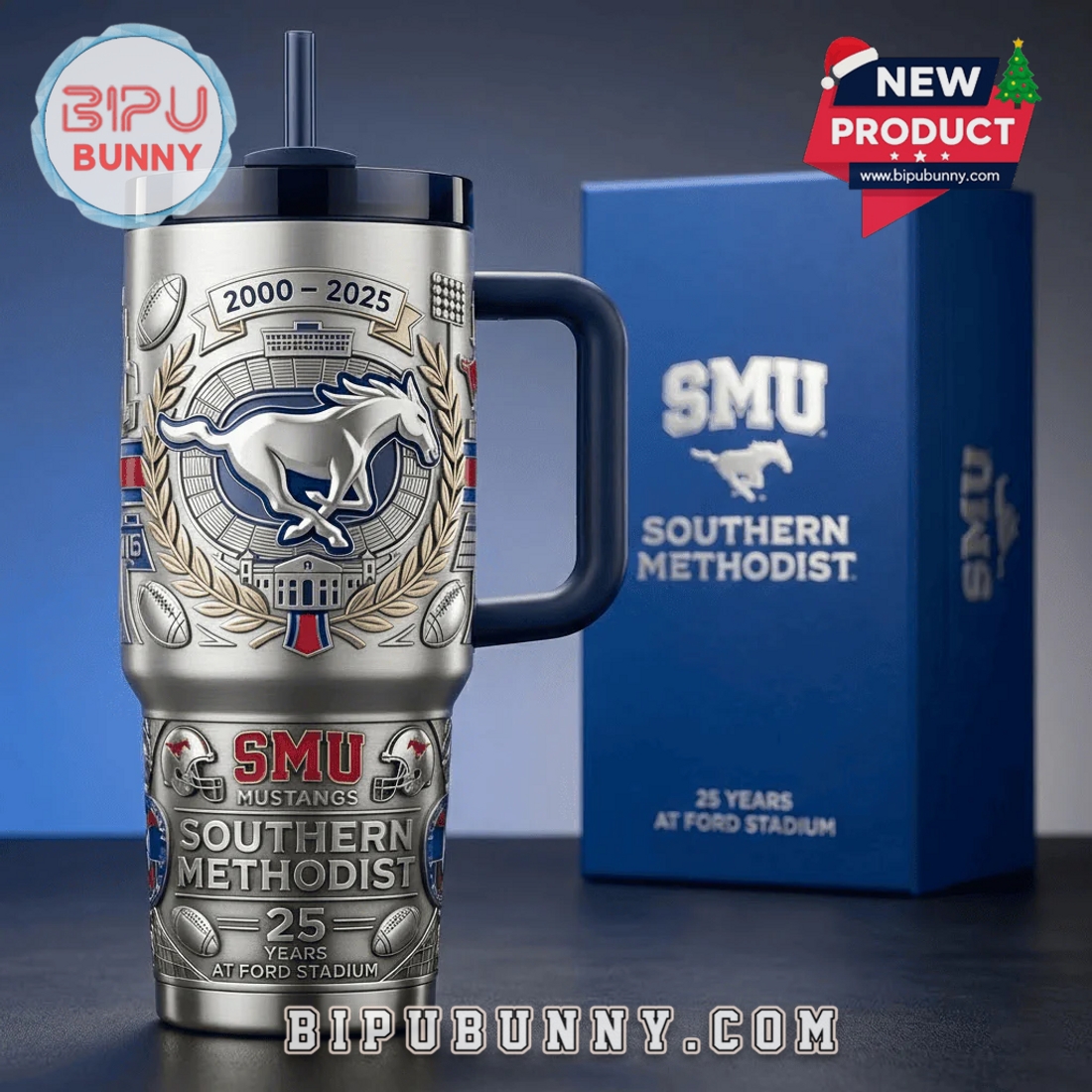 SMU Mustangs 25th Anniversary 40oz Tumbler With Handle – Premium Insulated Tumbler for Hot & Cold Drinks