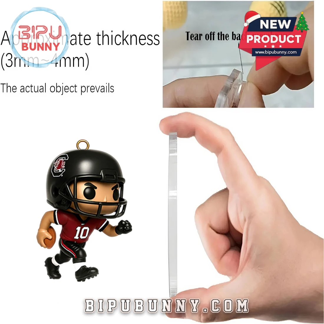 Inside the box, you’ll find 24 uniquely designed ornaments, each one featuring a piece of Gamecock pride. From mini football players in official team uniforms to mascots dressed in Santa hats, snowmen with Gamecocks scarves, stadium replicas, and logo-shaped charms, every item brings something new to your holiday décor. These ornaments are made from durable acrylic, with a smooth surface and an approximate thickness of 3–4mm, ensuring they last beyond one season. A peel-off back membrane keeps them protected until you’re ready to use them, and each piece includes a built-in hanging loop, so there’s no extra assembly needed.