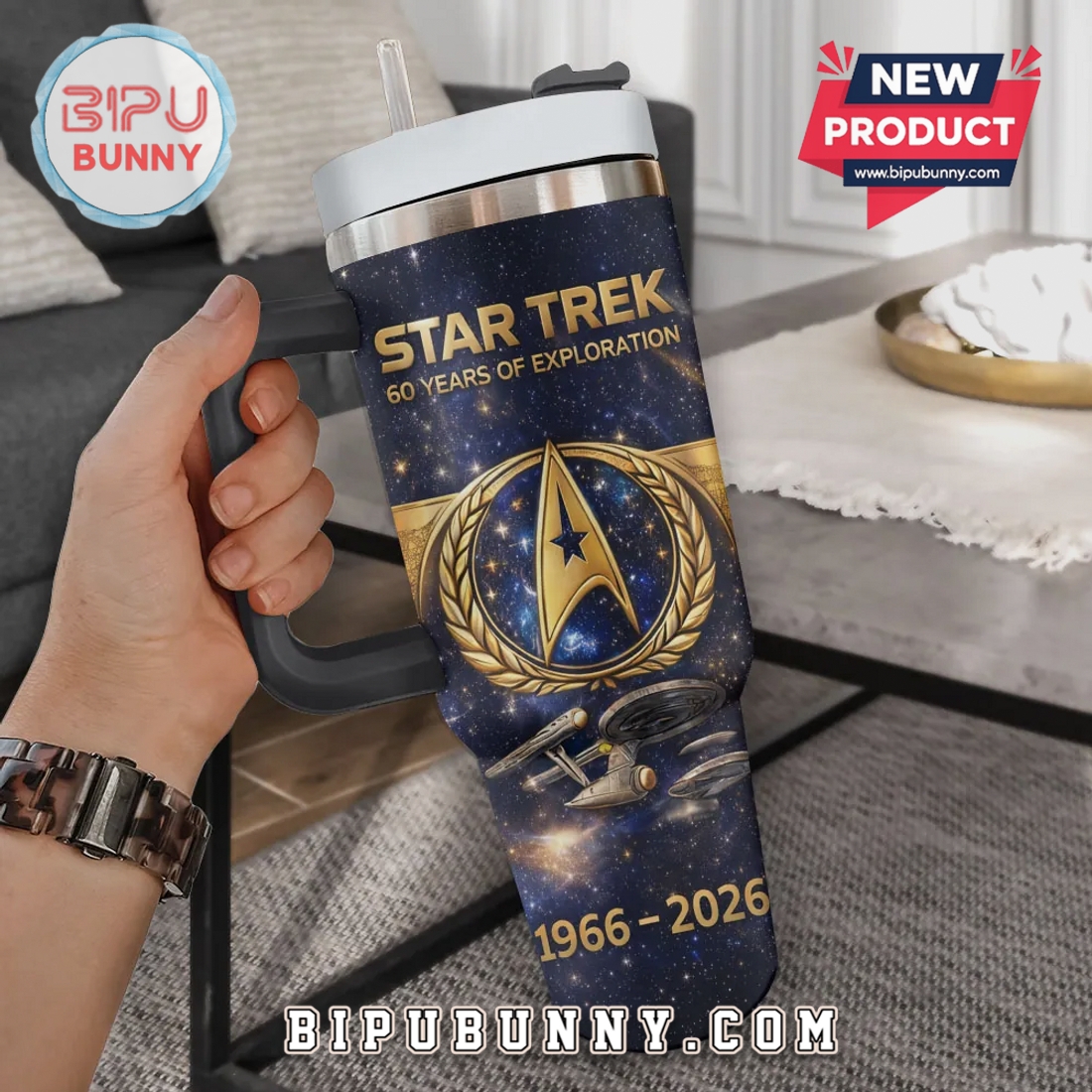 Honor 60 years of Star Trek with this premium, insulated travel tumbler. Keeps drinks hot for 6 hours, cold for 12.