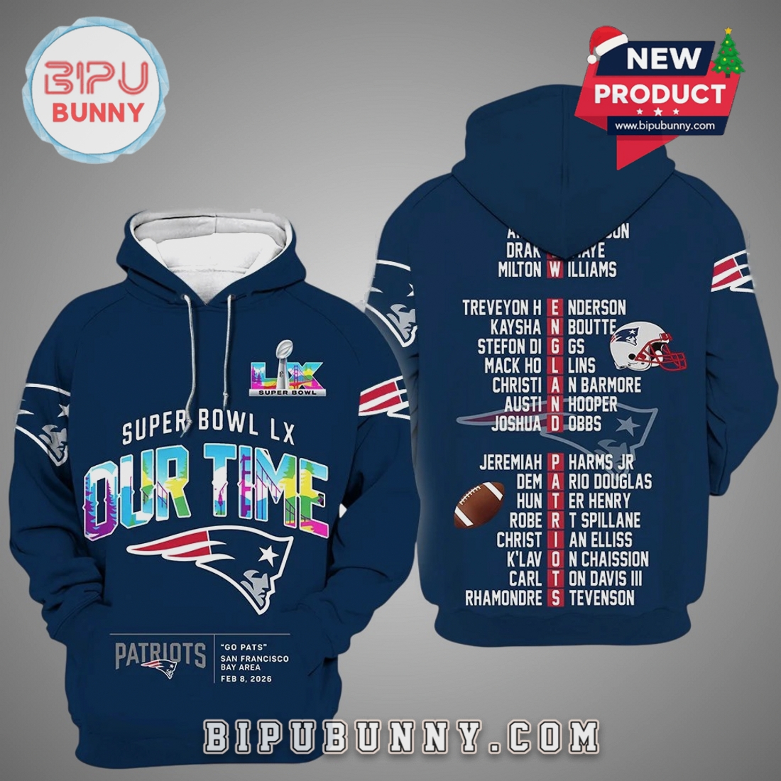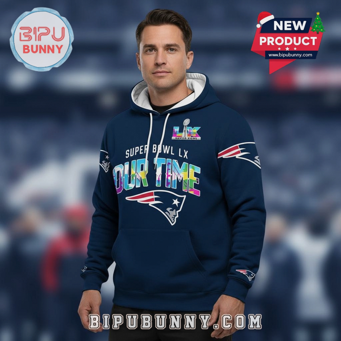 For the dedicated New England Patriots fan who lives for the thrill of the game and envisions future triumphs, this Super Bowl LX Patriots Our Time 3D Graphic Hoodie represents the ultimate expression of loyalty and anticipation. This is more than just a piece of apparel; it’s a bold declaration of belief, meticulously designed to capture the spirit of a team poised for greatness and the excitement leading up to a hypothetical Super Bowl LX victory. Every element of this hoodie is engineered to not only provide superior comfort and lasting quality but also to make a powerful visual statement that resonates with true Patriots devotion.