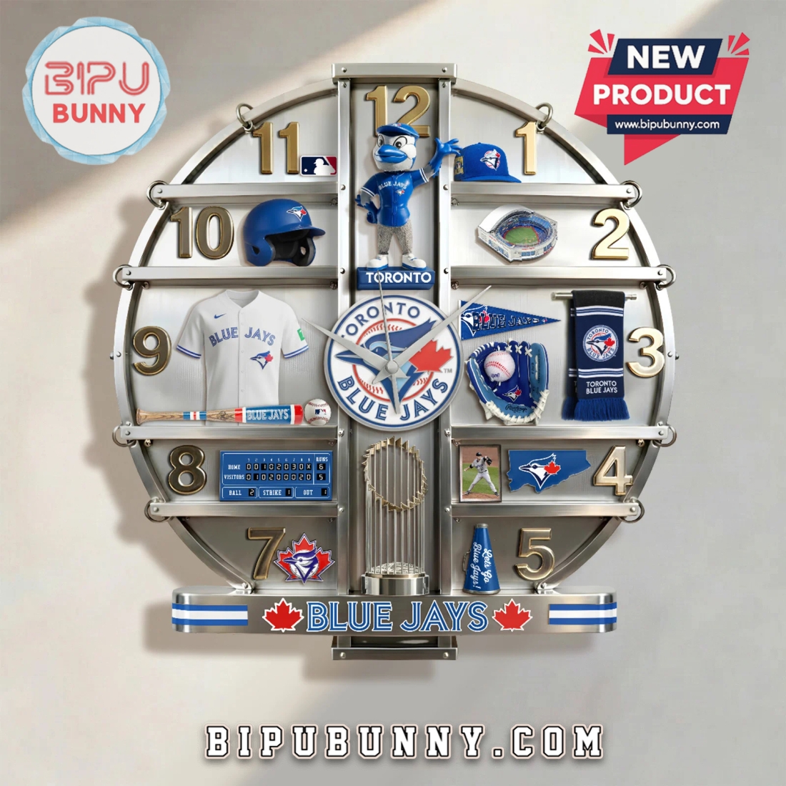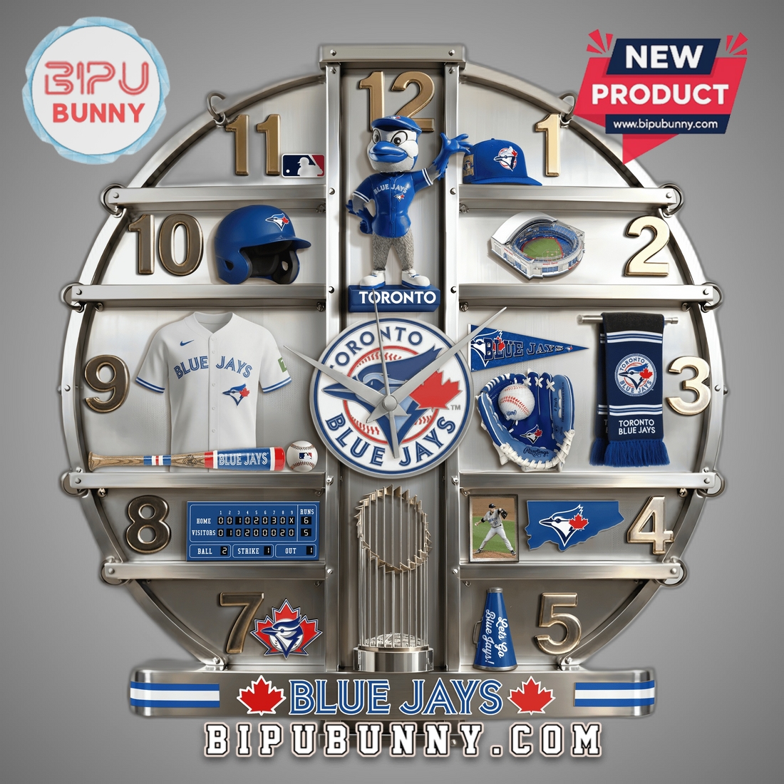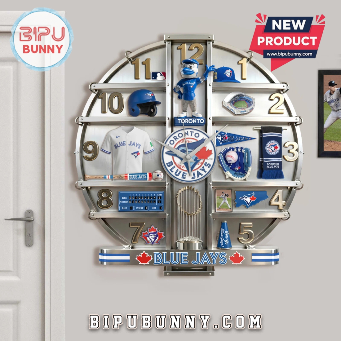 Functionally, this piece provides reliable timekeeping, typically housing a precise quartz movement that ensures silent, accurate operation. There’s no distracting ticking sound to disrupt quiet moments, making it perfect for bedrooms or professional environments where concentration is key. The clock hands are often designed for optimal readability, contrasting sharply with the background graphics, and the numerical indicators are clear and legible, integrated seamlessly into the overall team-themed design. Powered by standard AA batteries (not usually included), it offers cordless convenience and easy setup. The integrated hanging mechanism on the back makes installation effortless, requiring only a single nail or hook to securely display your Blue Jays passion. This clock isn’t just a functional item; it’s a statement of unwavering loyalty and a perfect gift for any Blue Jays enthusiast, whether celebrating a birthday, holiday, or housewarming. It fulfills the need for unique, high-quality team merchandise that goes beyond the typical flag or jersey, offering a piece of decor that is both practical and a constant source of joy, reflecting a deep connection to the spirit and excitement of Toronto Blue Jays baseball.