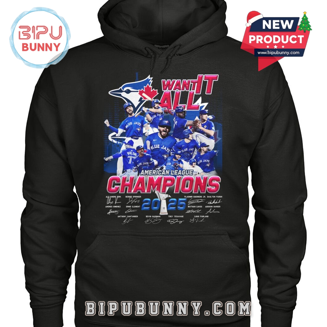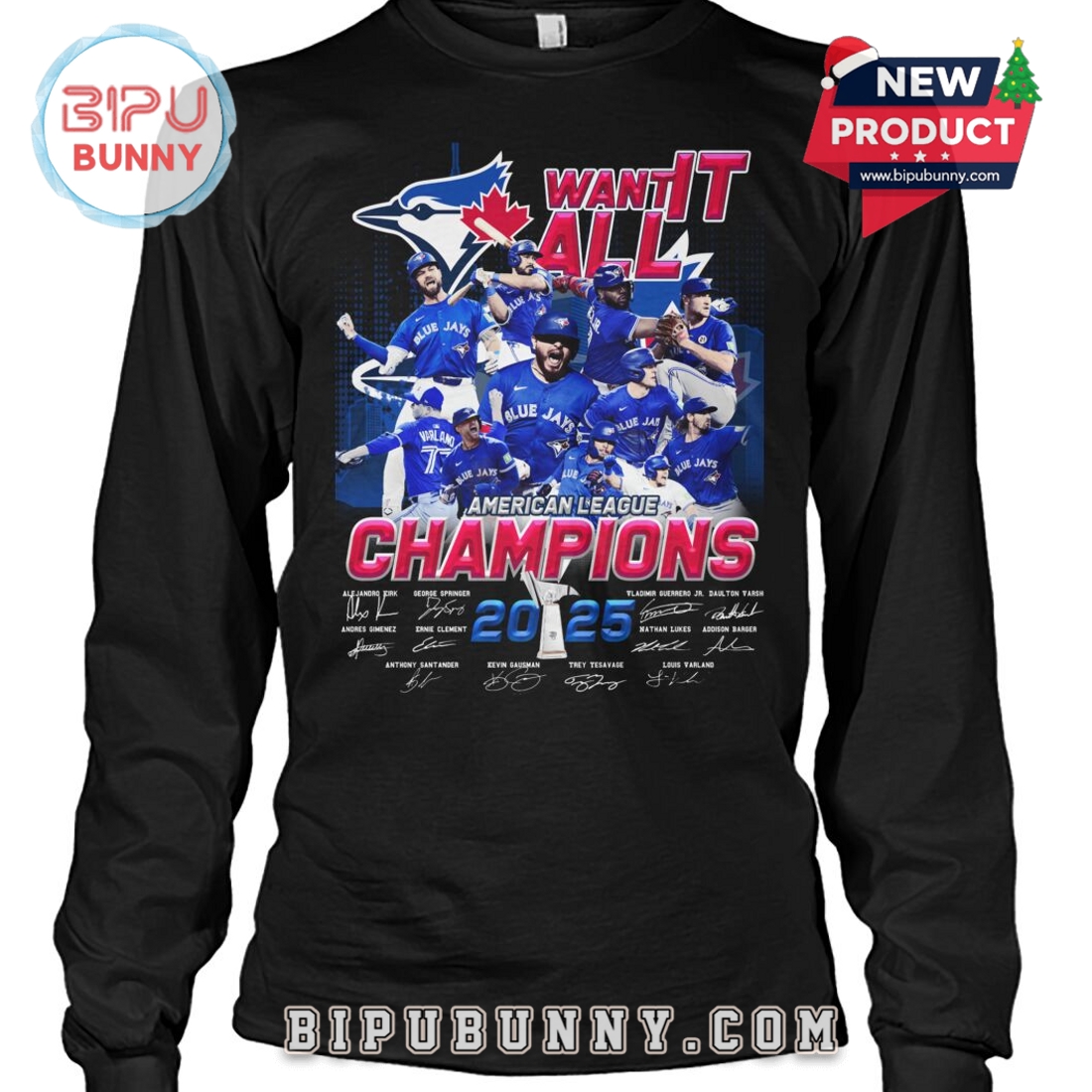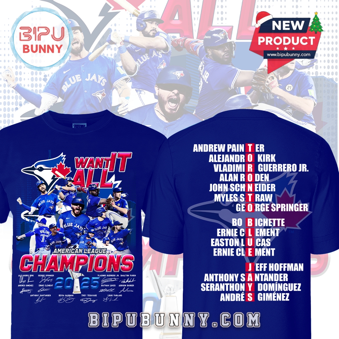 Toronto Blue Jays Want It All American League Champions T-Shirt – Premium Quality Cotton T-Shirt