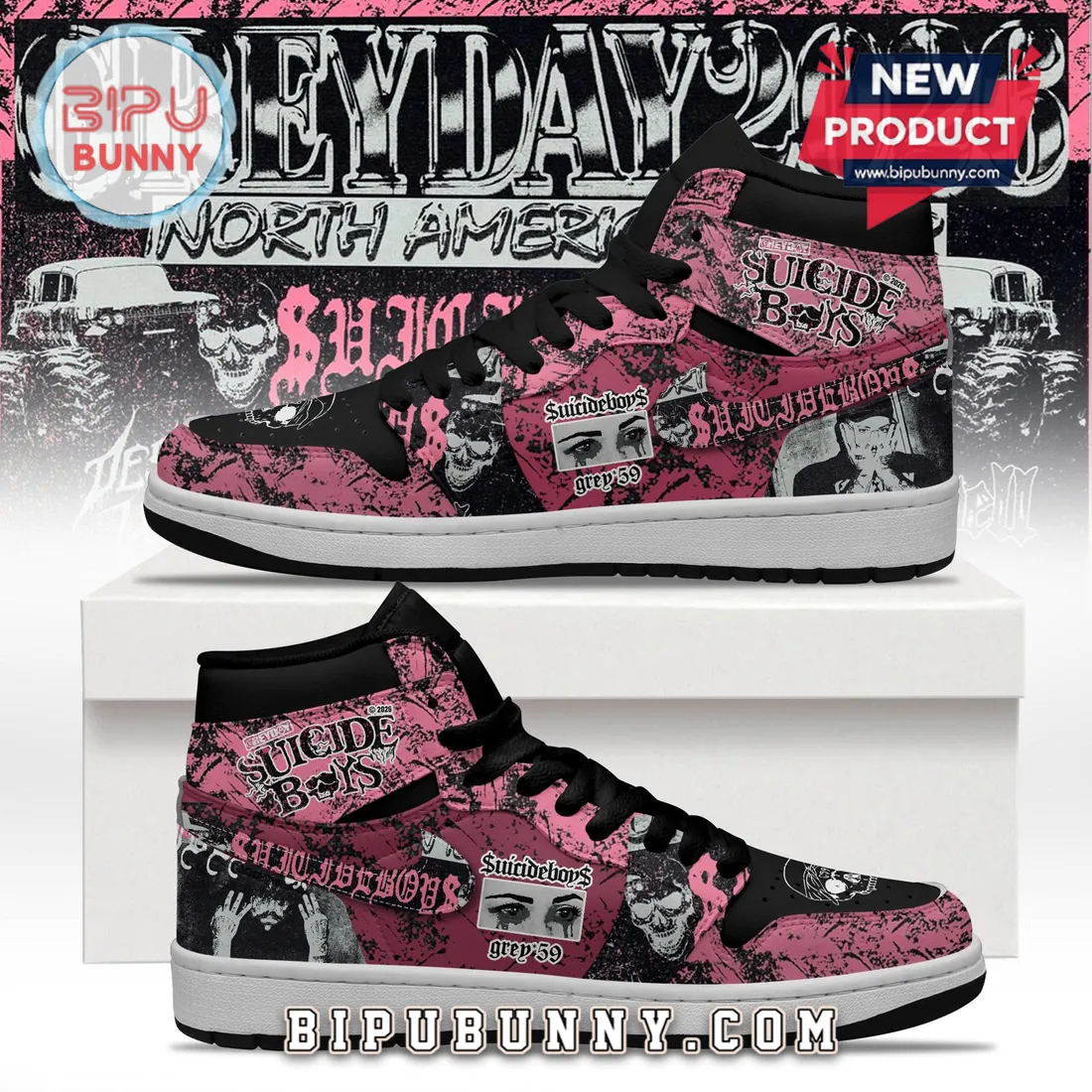 Shop high-quality $uicideboy$ GREYDAY 2023 Pink Grunge Skulls Fan High-Top Sneakers today at Bipubunny and enjoy exclusive discounts. Choose your perfect size, explore the full photo gallery, and step out in comfort and classic AJ1 style!