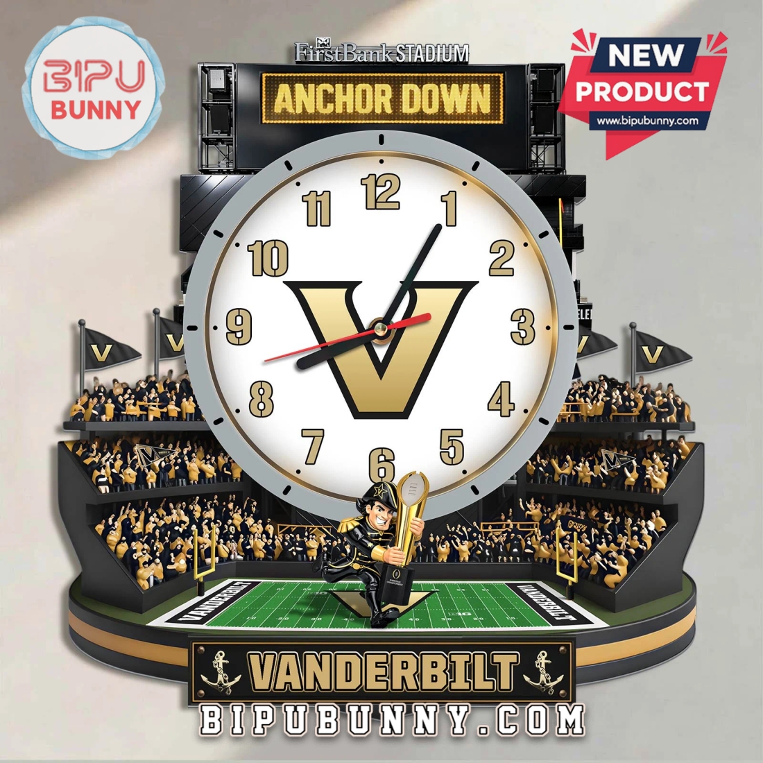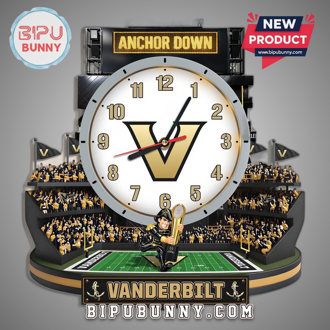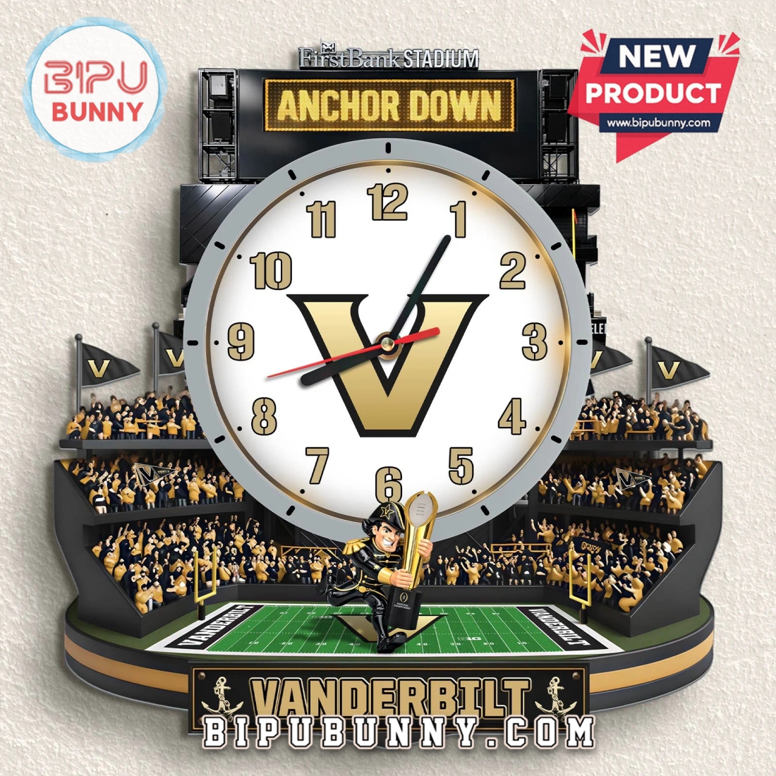 For the die-hards, the lifers, the true black and gold faithful. This Vanderbilt Commodores 3D stadium clock is your constant reminder: Anchor Down, always.