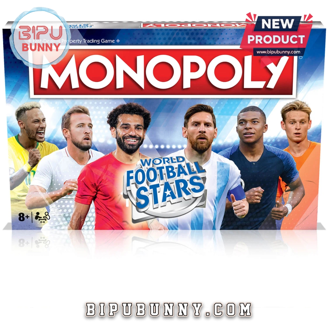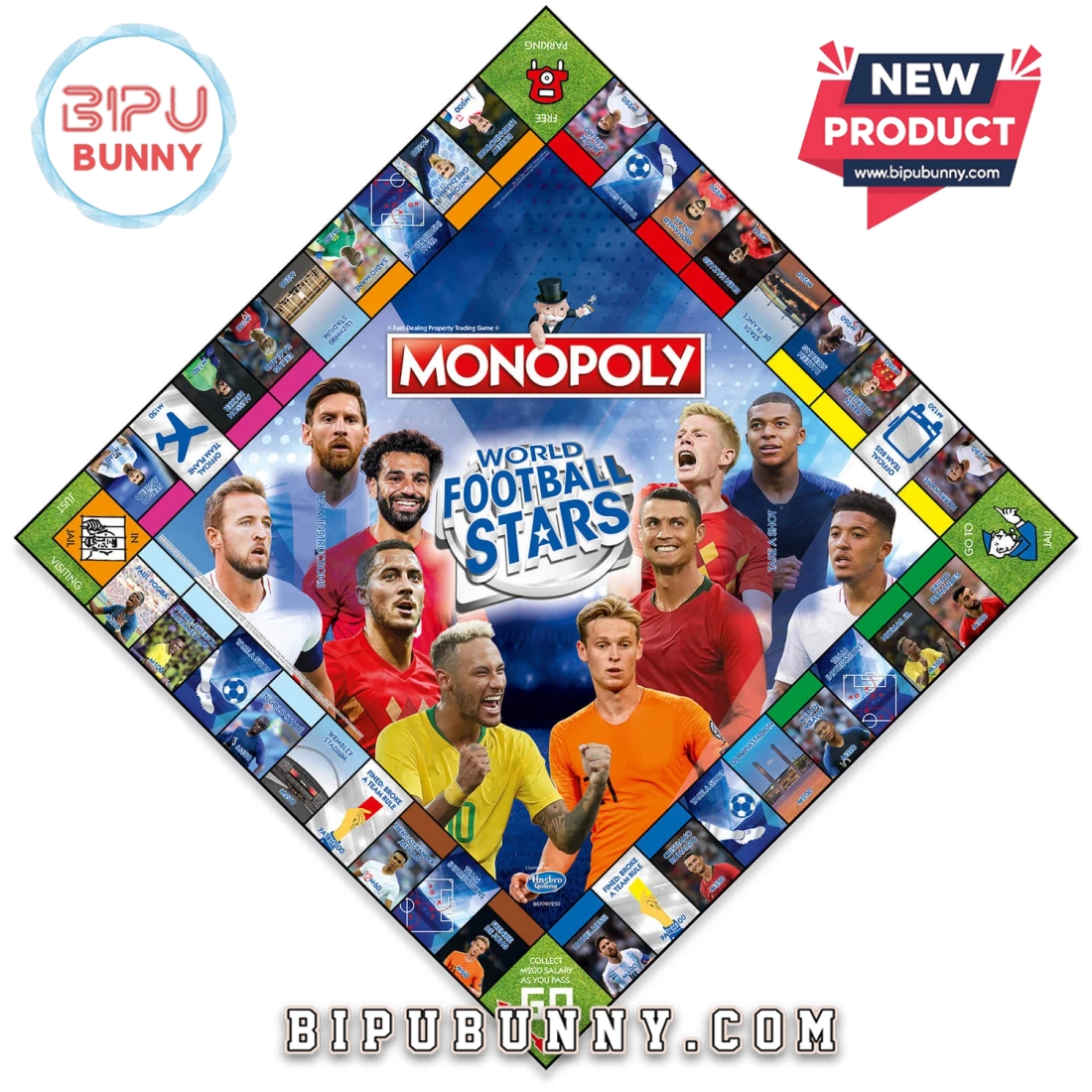 The World Football Stars Monopoly Game combines the excitement of football with the fun of Monopoly, bringing together your passion for the sport and love for classic board games. This version features vibrant colors and dynamic visuals that showcase some of the biggest football stars from around the globe, including Messi, Neymar, and Mohamed Salah. The game board is filled with famous football players and stadiums, replacing traditional properties with iconic football locations and legendary players. The cards and game money are also customized with football elements, including soccer balls and goalposts, to bring even more immersion into the game. The game pieces include custom tokens shaped like football boots, trophies, and soccer balls, giving you a sense of being on the pitch. Made from high-quality materials, this game offers long-lasting fun for fans of all ages, giving you an unforgettable experience every time you play.