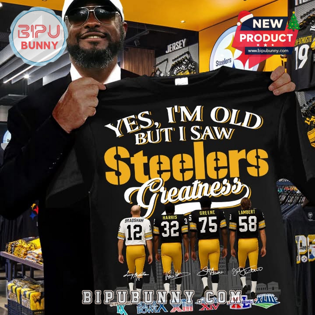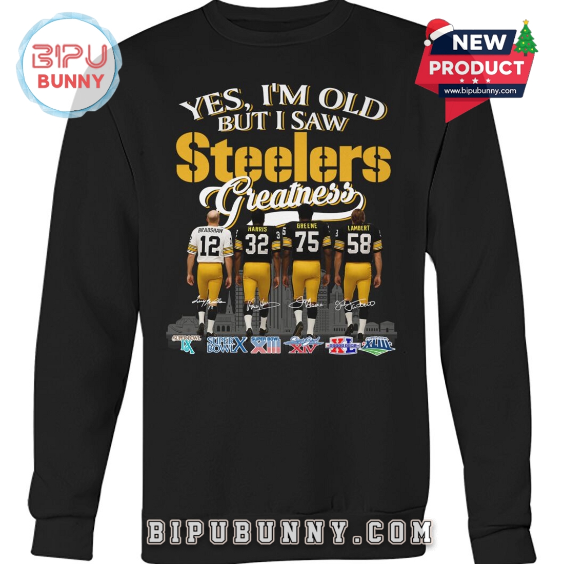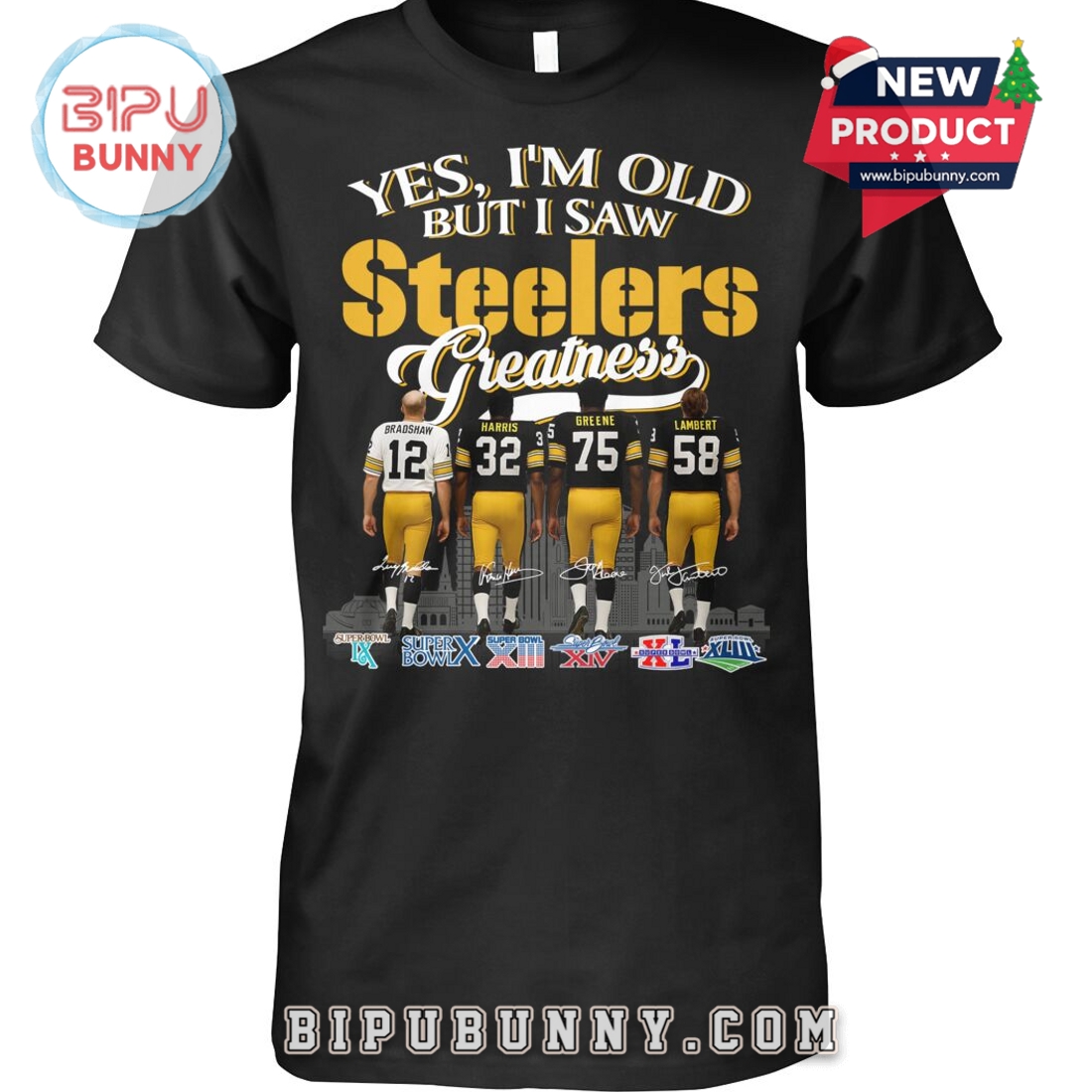 At its core, the appeal of this shirt lies in its resonant message. “Yes, I’m Old” acknowledges the passage of time, a wry acceptance of one’s vintage status, but immediately pivots to “But I Saw Steelers Greatness.” This isn’t generic fandom; it’s personal history. It speaks to the fans who remember the Steel Curtain defense terrorizing opposing offenses, the precision of Terry Bradshaw’s passes, the acrobatic catches of Lynn Swann and John Stallworth, and the sheer dominance of those 1970s Super Bowl dynasties. For them, “greatness” isn’t a concept; it’s a living memory, a series of unforgettable Sundays etched into their minds. It validates their lifelong commitment, recognizing that their journey with the team spans across multiple championships and eras, from the iconic black and gold uniforms to the roar of Three Rivers Stadium and Heinz Field. This shirt allows them to proudly broadcast their unique perspective, distinguishing them from fair-weather fans or those who only joined the bandwagon recently.