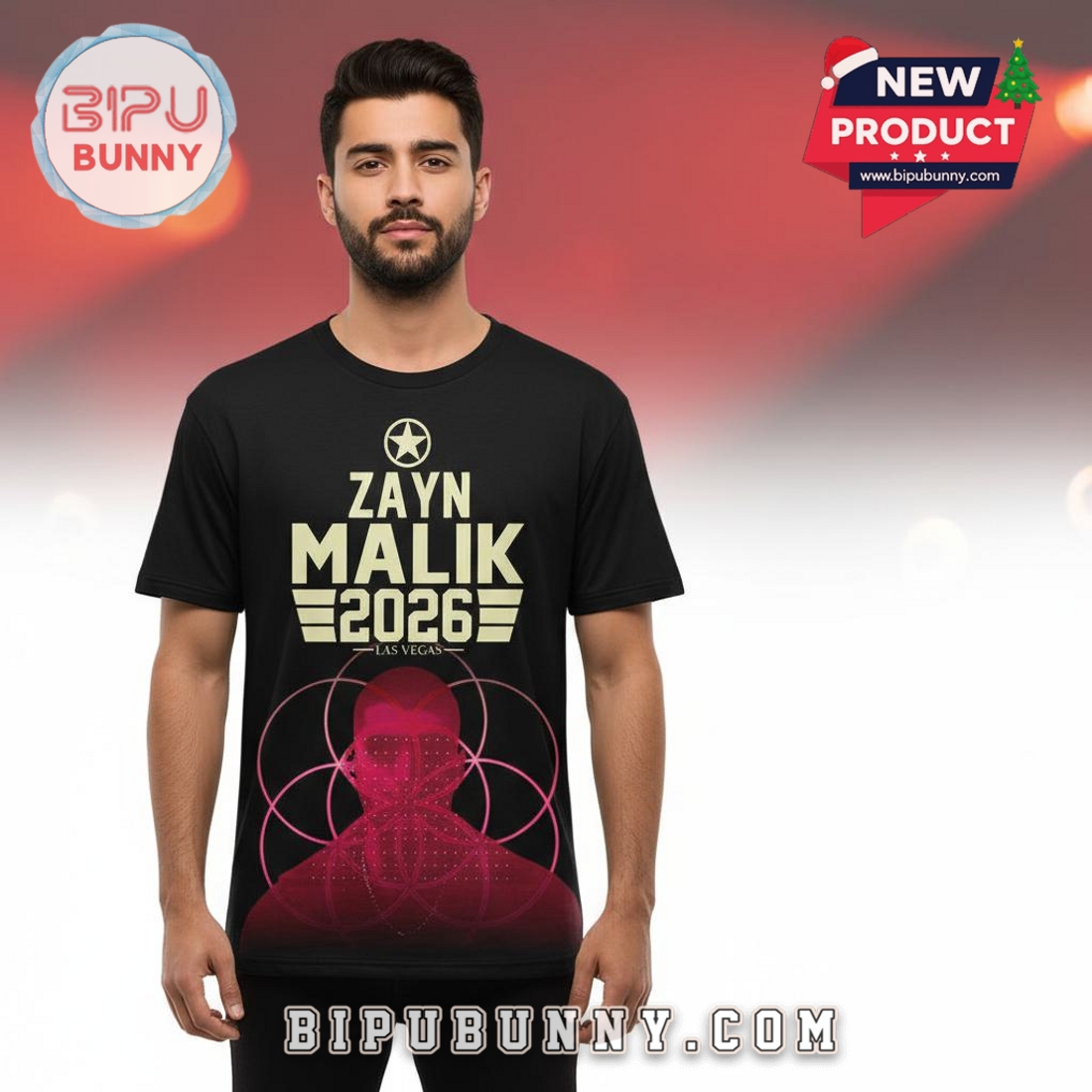 Beyond its technological marvel, the shirt’s aesthetic is a masterclass in sophisticated design, perfectly encapsulating the electric energy of Las Vegas and Zayn’s distinctive persona in 2026. Rendered in a deep, rich black, the shirt serves as an elegant backdrop, allowing its vibrant design elements to truly pop. The primary graphic, strategically placed across the chest and back, features a stylized, futuristic rendition of Zayn, perhaps an abstract portrait or a powerful silhouette, intertwined with subtle yet unmistakable nods to the Las Vegas skyline – neon-lit architectural forms, cascading light trails, and geometric patterns that evoke the city’s dynamic entertainment landscape. The “2026” insignia is artfully integrated, hinting at a landmark year, while understated reflective or iridescent accents catch the light, adding a touch of glamour without overwhelming the design. These visual components are precisely where the AR markers are embedded, ensuring that the digital interaction feels seamless and organic to the shirt’s overall look.